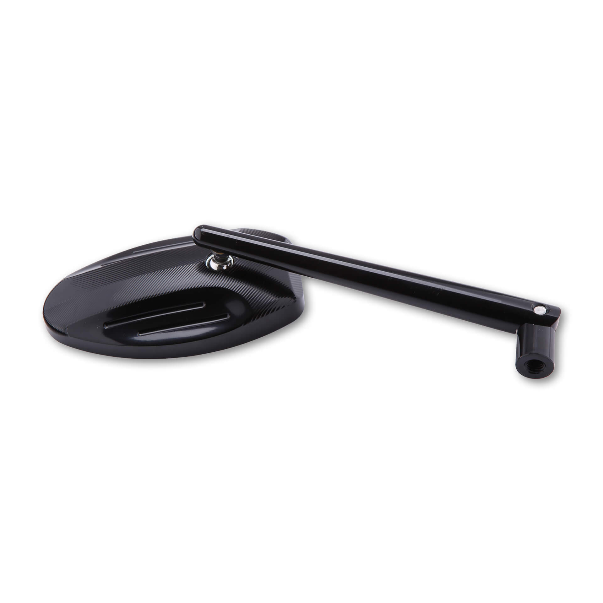Der SHIN YO Ferrara Spiegel in Schwarz überzeugt durch sein edles Design und hochwertige Verarbeitung. Der glänzend eloxierte Aluminium-Lenkerspiegel besticht mit gefrästen Rillen am ovalen Spiegelkopf, die die sportliche Optik unterstreichen. Dank des verstellbaren Gelenks am Spiegelarm lässt sich der Blickwinkel flexibel anpassen – ideal für den Rennstrecken- oder Showeinsatz.