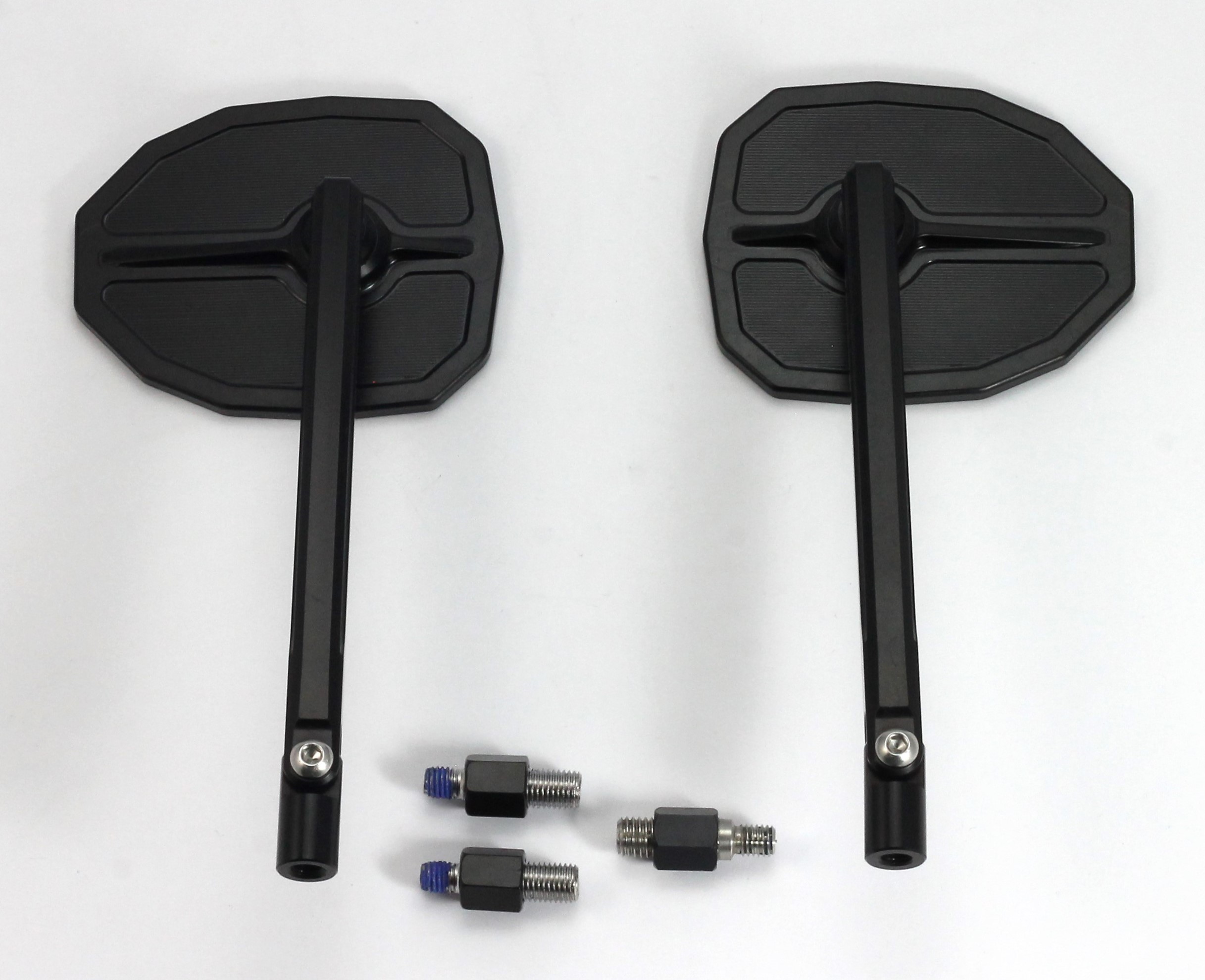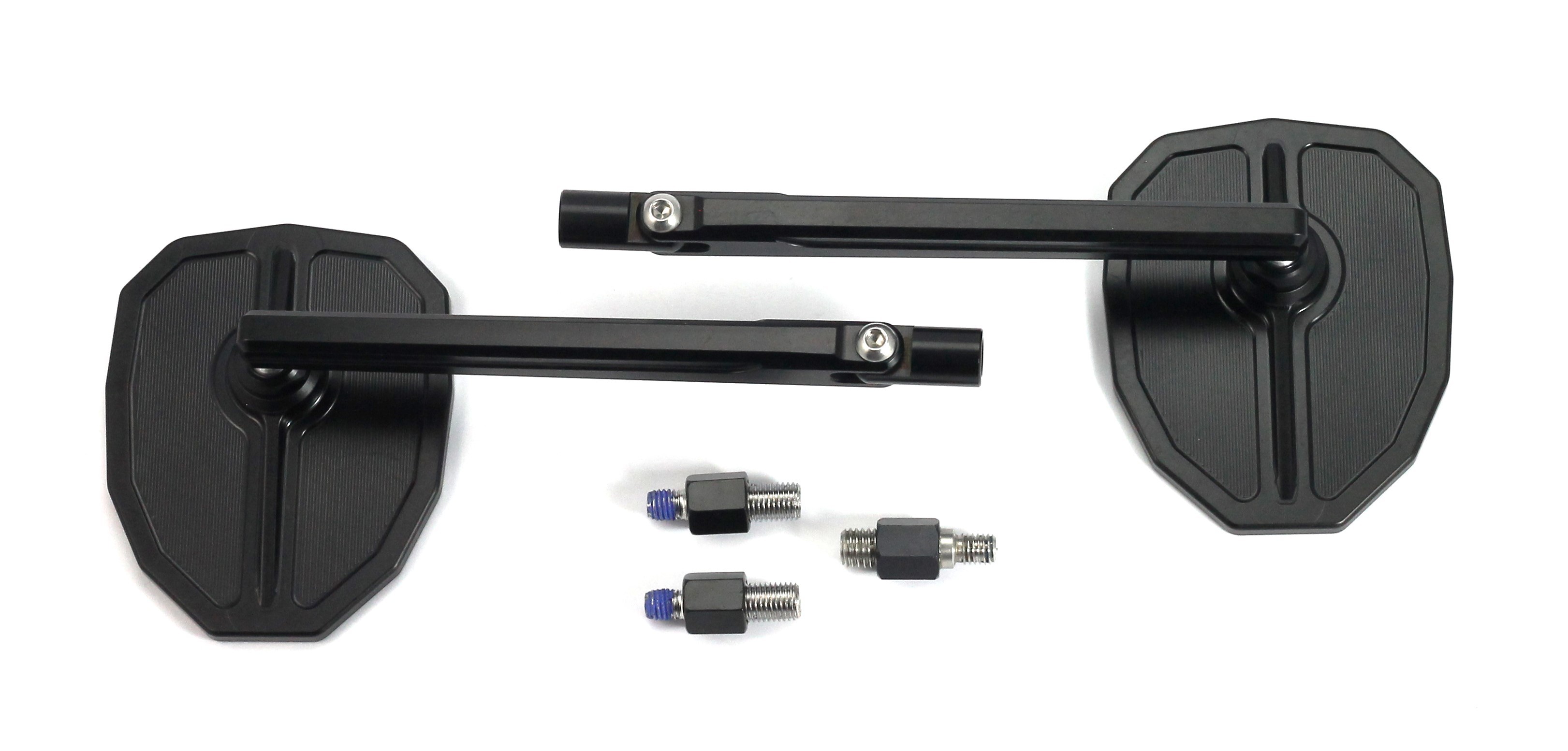 Das hochwertige MG Biketec Spiegel Set überzeugt durch ein präzises, aus 6082er Aluminium CNC-gefrästes Design. Dank der hitzebehandelten Legierung und der kompletten Eloxierung in Schwarz zeichnet sich das Spiegel Set durch außergewöhnliche Haltbarkeit und Korrosionsbeständigkeit aus. Das lasergravierte MG Biketec Logo sorgt für einen stilvollen Look, während das extrem leichte Gewicht die aerodynamische Performance Ihres Motorrads unterstützt. Die Spiegel verfügen über ein ECE Prüfzeichen und sind damit für den Straßenverkehr zugelassen. Mit dem M10 x 1,25 mm Gewinde (2x Rechtsgewinde, 1x Linksgewinde) eignet sich das Set perfekt für die Montage an Benelli Café Racer 899 ab 2009. Profitieren Sie von langlebigen Edelstahlschrauben und der bewährten Qualität aus Österreich – designt, entwickelt und hergestellt seit 2008.
