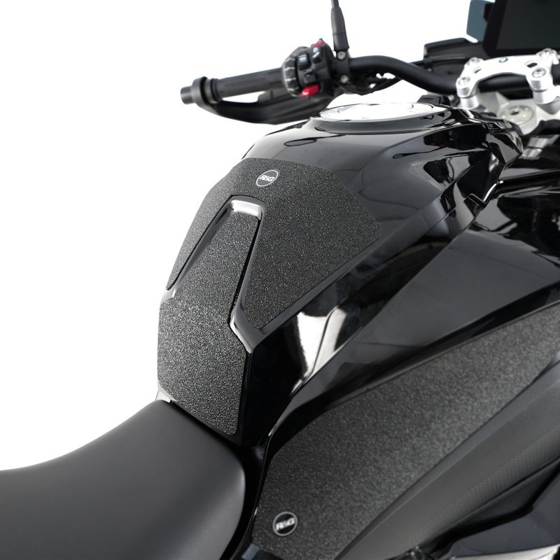 Gefertigt aus hochwertigem, strapazierfähigem Material – identisch mit den bewährten R&G Tank Traction Pads – überzeugt die Mitteltankauflage durch exzellente Haftung und hohe Beständigkeit. Das Pad ist ausschließlich in schwarz erhältlich und verfügt über eine runde Aussparung zur Integration des mitgelieferten Herstellerlogos.