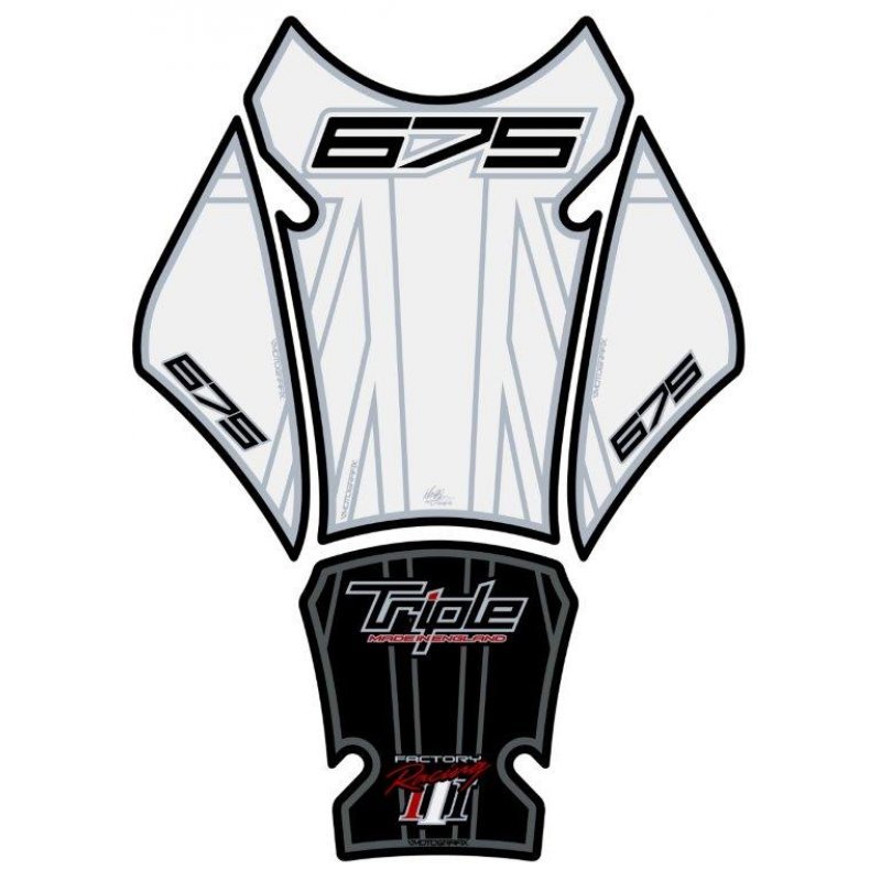 Das Motografix 3D Gel Tank Pad Protector TT023WJ bietet hochwertigen Schutz und ein stilvolles Design passend für Triumph Triple 675. Es handelt sich um ein universelles Tankpad aus speziellem, stark haftendem Vinyl, das in Kalifornien 8 Jahre lang unter extremen Bedingungen (Temperaturbereich von -50 °C bis 110 °C) getestet wurde. Die Oberfläche besteht aus einem brillanten 3D-Gel mit Hochglanzeffekt und sorgt dafür, dass keine Blasen oder Gelbstiche entstehen.
