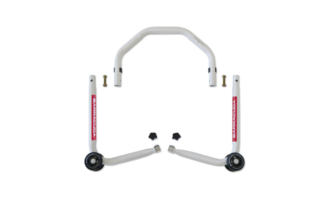 Der Barracuda Montageständer mit Gabelaufnahmen ist die ideale Lösung für alle, die Wert auf Stabilität, Funktionalität und Langlebigkeit legen. Gefertigt aus robustem, lackiertem Stahlrohr überzeugt dieser Werkstattständer durch seine solide Konstruktion und hochwertige Verarbeitung. Dank der breiten und verstellbaren Aufnahmen lässt sich der Montageständer flexibel einsetzen und passt sich an die meisten Motorrad-Modelle an.