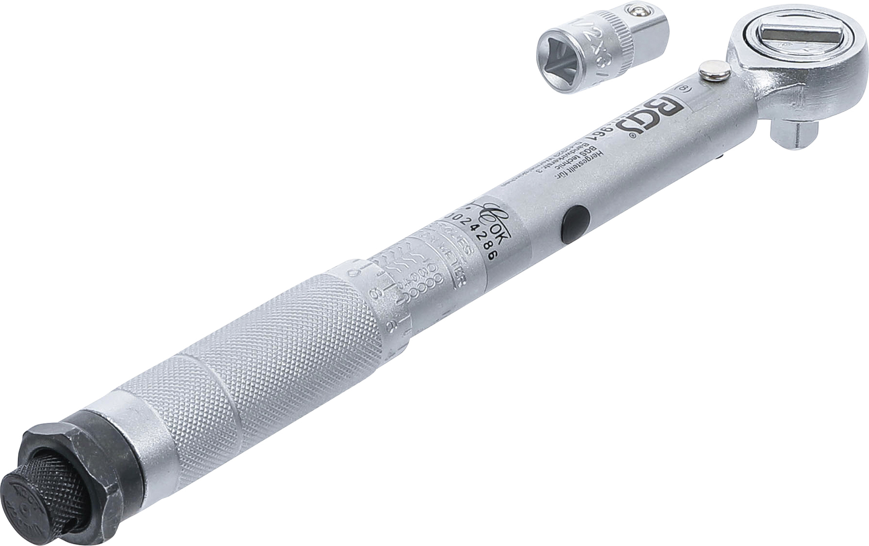 Eine integrierte Arretierschraube fixiert das eingestellte Drehmoment zuverlässig und verhindert unbeabsichtigtes Verstellen. Der mitgelieferte Adapter von 10 mm (3/8 Zoll) auf 12,5 mm (1/2 Zoll) erweitert die Einsatzmöglichkeiten des Werkzeugs erheblich. Dank einer Auslösegenauigkeit von +/- 4 % und 45 präzise gearbeiteten Zähnen im Knarrenkopf ist dieser Drehmomentschlüssel ideal für präzise Montagearbeiten geeignet.