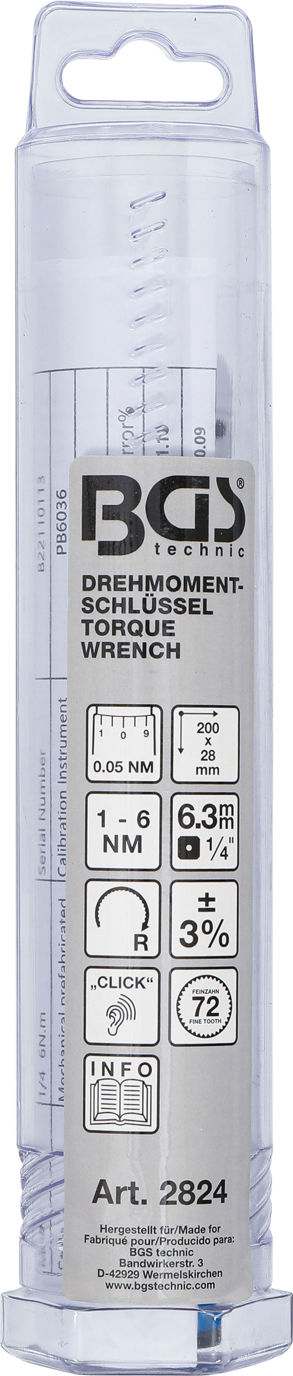 Drehmomentschlüssel 1-6 Nm mit 1/4" (6,3 mm) Außenvierkant