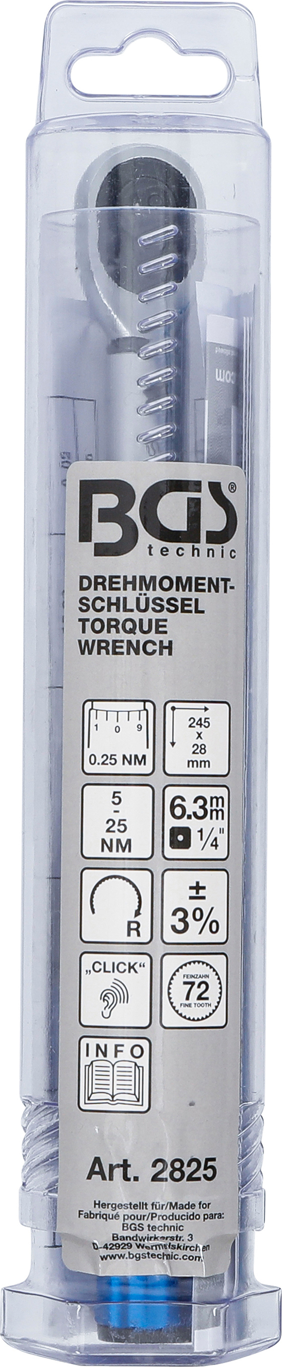 - 1x Drehmomentschlüssel 5–25 Nm, 1/4 Zoll (6,3 mm) Außenvierkant