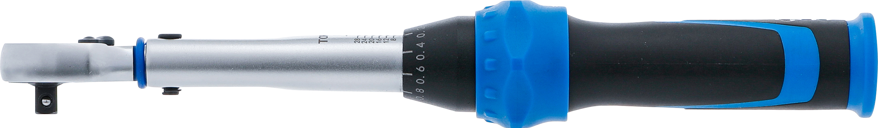 Dieser hochwertige Drehmomentschlüssel mit 6,3 mm (1/4 Zoll) Außenvierkant bietet Ihnen präzises Arbeiten bei einem Drehmomentbereich von 6 bis 30 Nm. Er eignet sich hervorragend zum kontrollierten Anziehen von Verschraubungen mit Rechtsgewinde und überzeugt durch seine fein abgestimmte Mechanik sowie hohe Auslösegenauigkeit von +/- 3 %.
