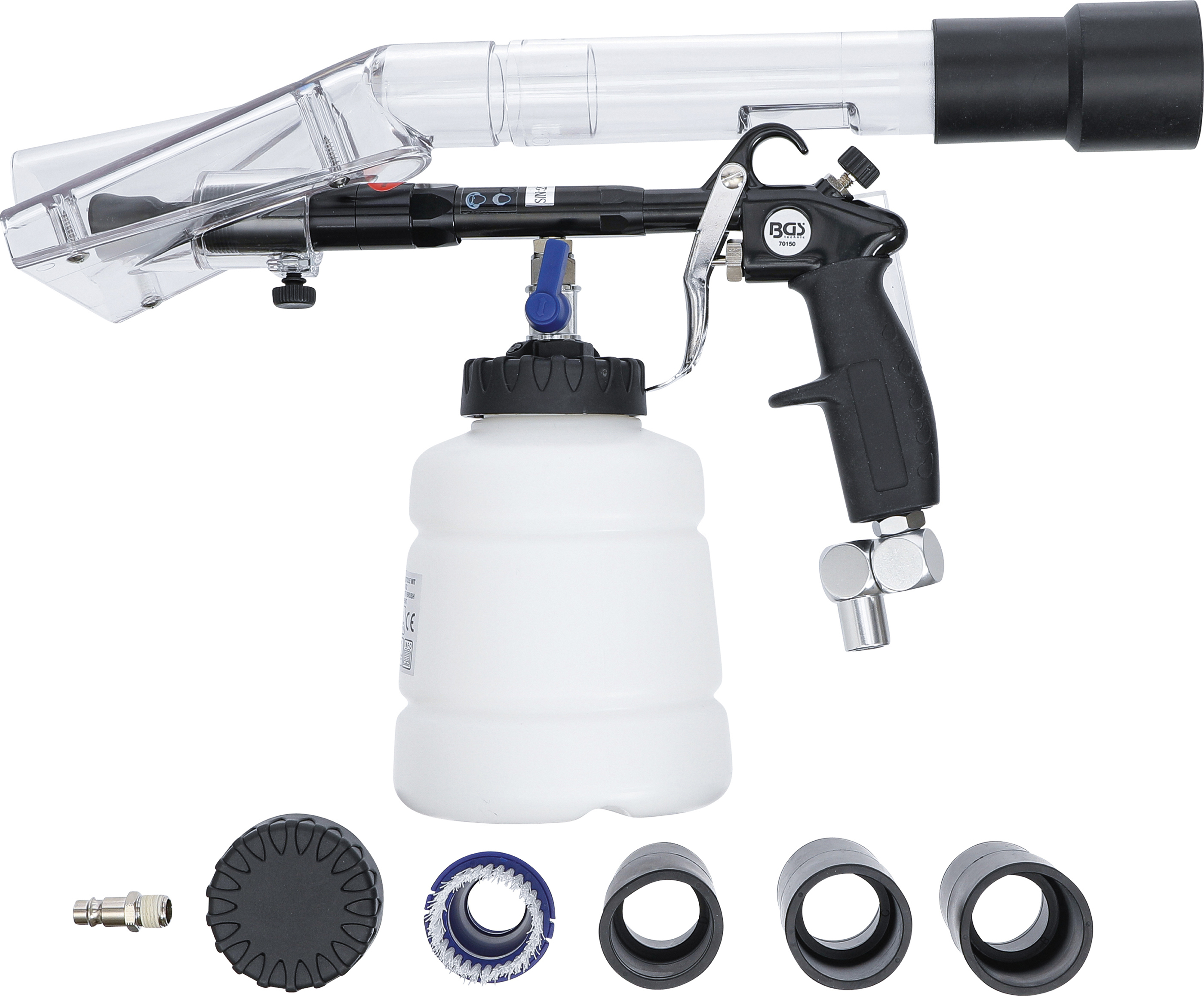 - 1 Saugaufsatz für Druckluft-Reinigungspistole (groß) mit 4 Adaptern