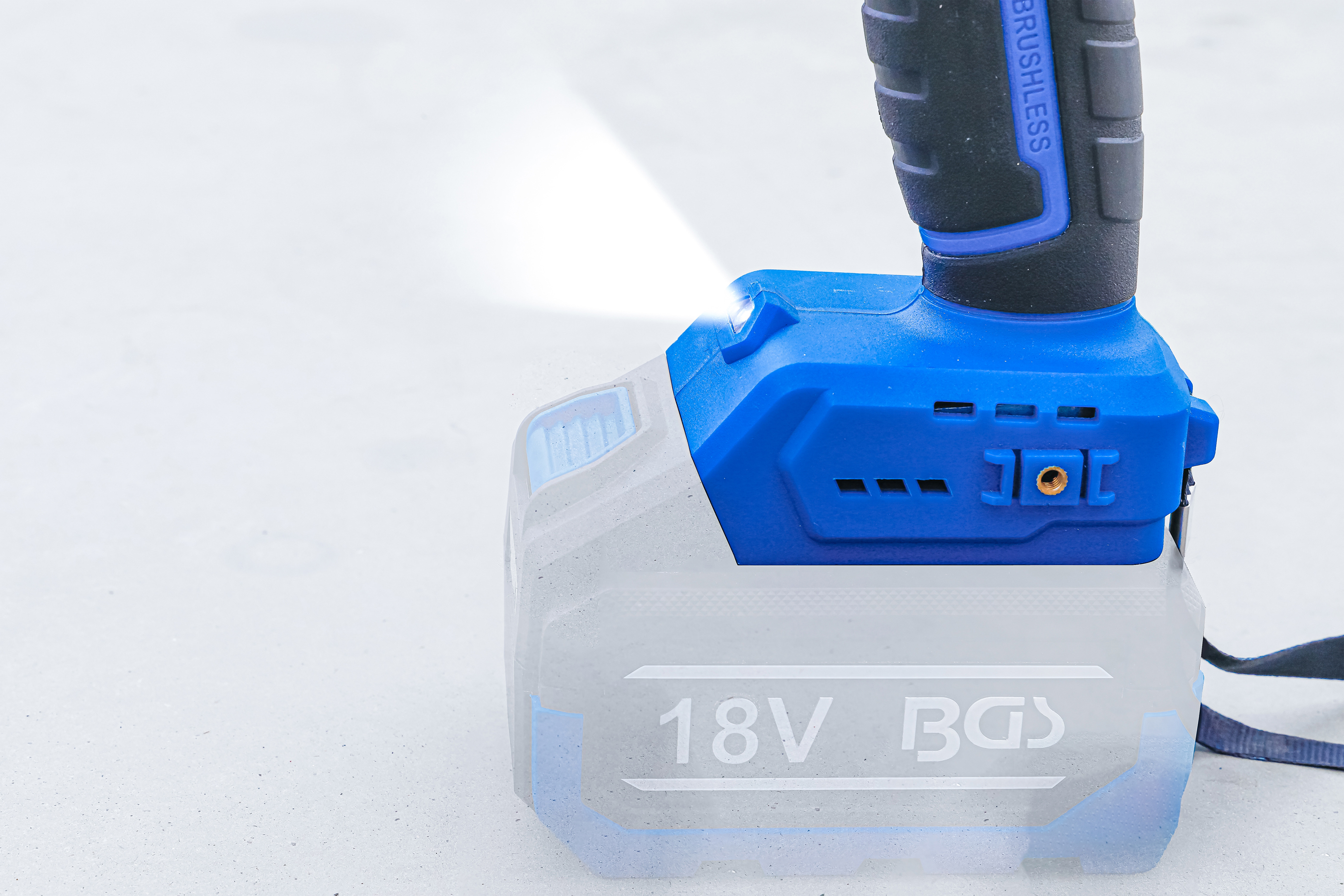 Zusätzliche Ausstattungsmerkmale wie LED-Arbeitslicht, Rechts-/Linkslauf, 20-stufiges Drehmomentmodul sowie ein praktischer Metall-Gürtelclip bieten hohen Bedienkomfort. Der Akku-Schlagbohrschrauber ist kompatibel mit dem BGS 18-V-System, wodurch Sie vorhandene Akkus und Ladegeräte problemlos weiterverwenden können.