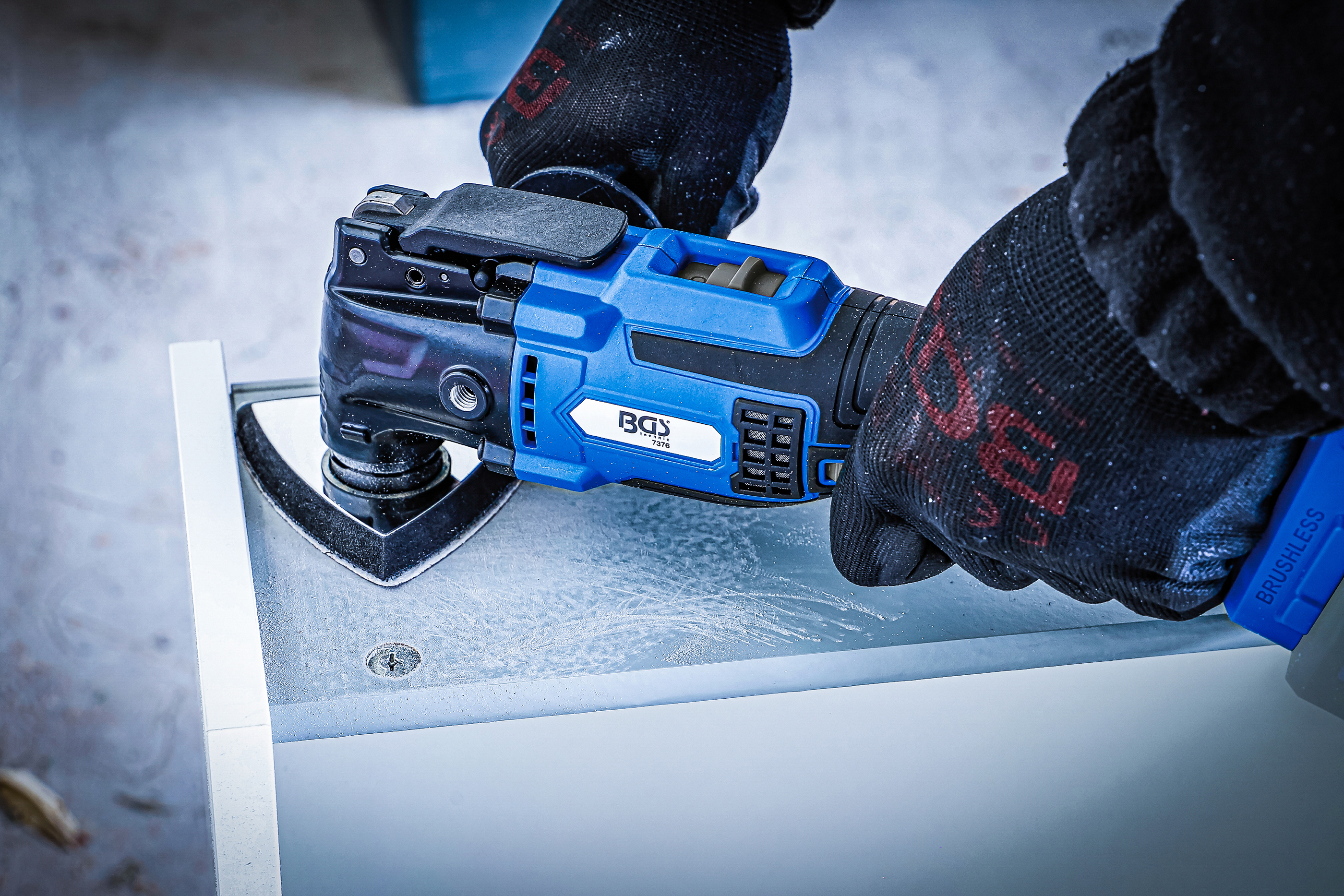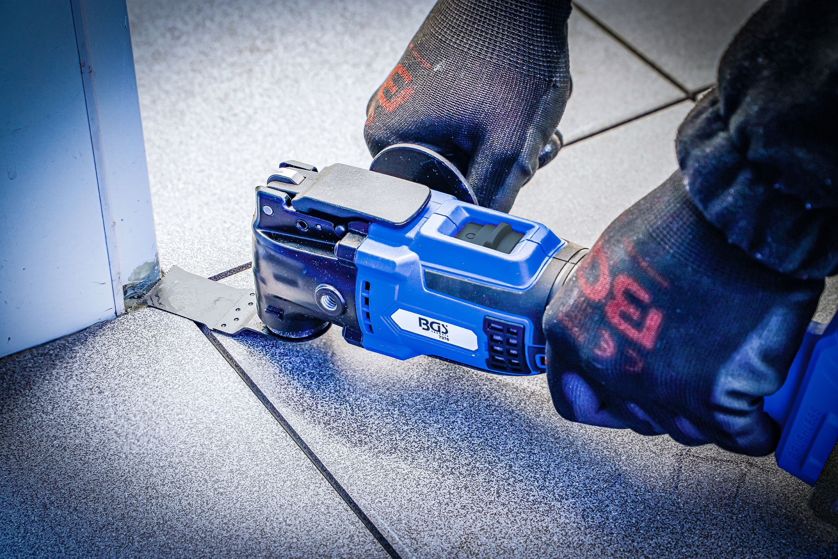Das leistungsstarke Akku-Multifunktionswerkzeug mit 18 V bürstenlosem Motor ist ein unverzichtbares Werkzeug für professionelle Handwerker und ambitionierte Heimwerker. Dank seiner kompakten, kabellosen Bauweise ermöglicht es flexibles Arbeiten in Industrie und Werkstatt sowie bei Ausbau-, Renovierungs- oder Sanierungsarbeiten. Die professionelle Oszillationstechnik eignet sich optimal zum Schleifen, Sägen, Schaben und Trennen unterschiedlicher Materialien. Das Schnellspannsystem erlaubt einen werkzeuglosen Zubehörwechsel in nur wenigen Sekunden, wodurch Sie Zeit und Aufwand sparen. Durch die Universalaufnahme ist das Multifunktionswerkzeug mit gängigem Zubehör kompatibel – ideal, wenn Sie maximale Flexibilität bei der Werkzeugauswahl benötigen. Der kraftvolle, bürstenlose Motor sorgt für hohe Effizienz, längere Laufzeit und verbesserte Lebensdauer. Das ergonomische Design mit Softgrip und Zusatzhandgriff bietet sicheren Halt und hohen Arbeitskomfort, unterstützt durch ein starkes LED-Arbeitslicht für optimale Sicht in dunklen Bereichen. Mit einer Schwingzahl von 5000–20000 Oszillationen pro Minute erreichen Sie präzise Resultate in jeder Anwendung. Schalldruckpegel: 91 dB(A), Schallleistungspegel: 102 dB(A), Vibrationspegel (ahd): 8,4 m/s², Vibrationspegel (K): 1,5 m/s².