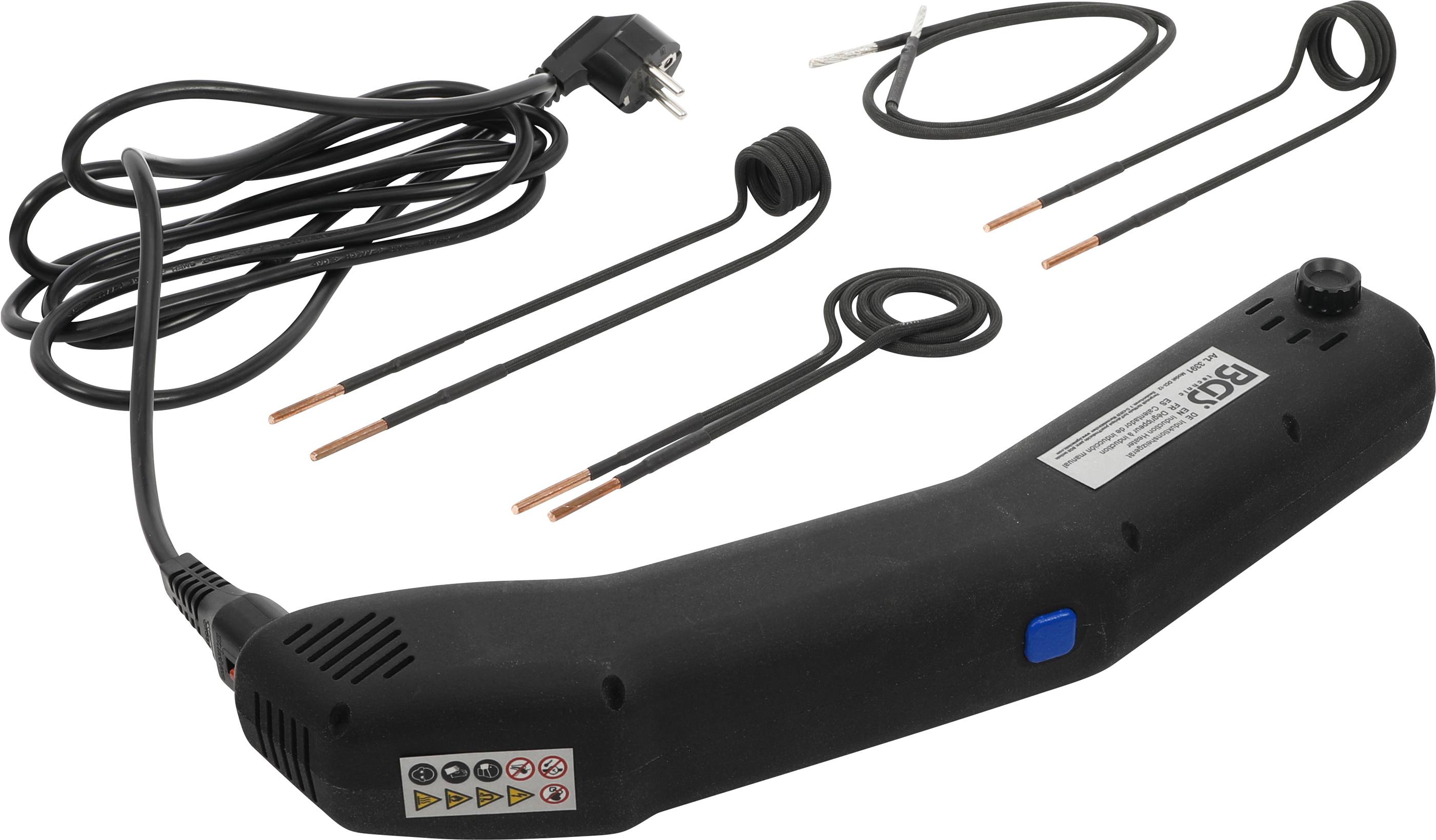 Das Induktionsheizgerät mit 1,2 kW Leistung ist ein kompaktes und leichtes Handgerät für den professionellen Werkstatteinsatz. Dank der integrierten LED-Beleuchtung behalten Sie stets optimale Sicht auf den Arbeitsbereich. Das Gerät nutzt das physikalische Prinzip der elektromagnetischen Induktion: In der Induktionsspule wird ein wechselndes elektromagnetisches Feld aufgebaut, das im metallischen Werkstück Wirbelströme erzeugt. Diese führen zu einer gezielten Erwärmung, ohne umliegende Bauteile stark zu beeinträchtigen.
