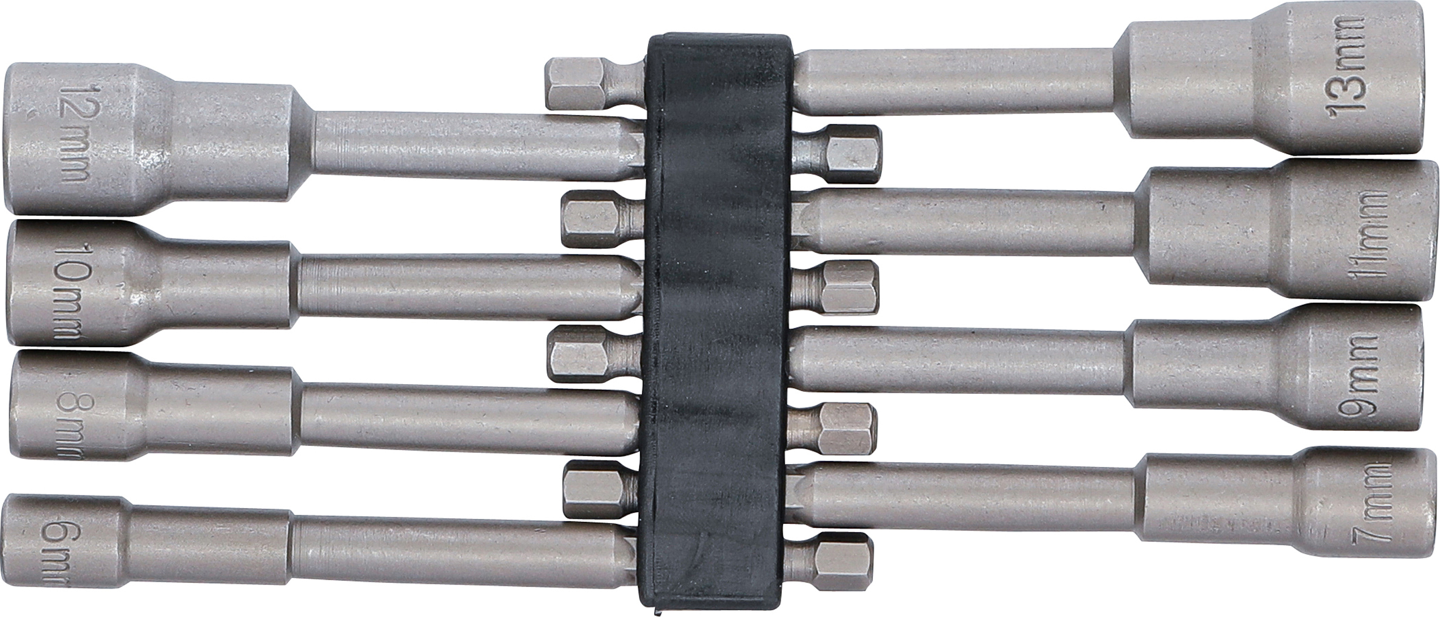 - 8 Steckschlüssel-Einsätze, Antrieb Außensechskant 6,3 mm (1/4"): SW 6, 7, 8, 9, 10, 11, 12, 13 mm
