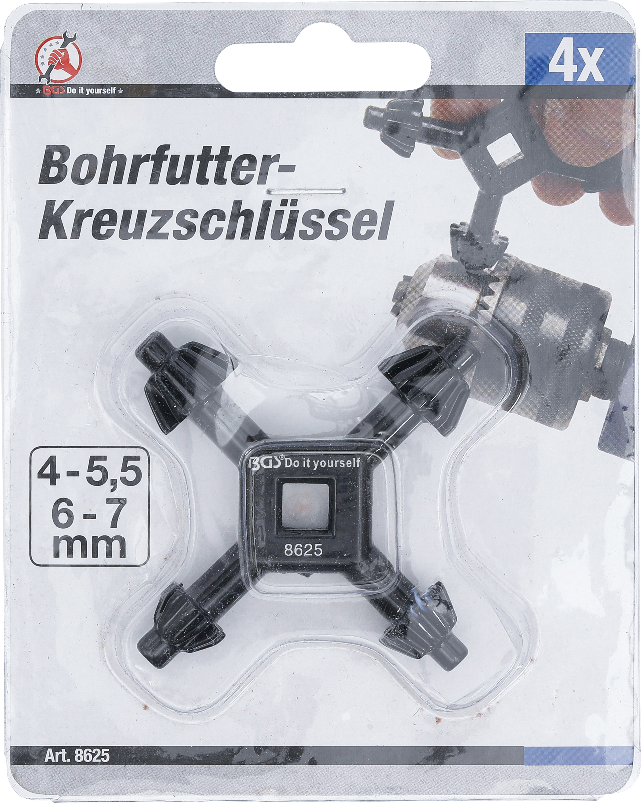 - 1x Bohrfutter-Kreuzschlüssel Ø 4 / 5,5 / 6 / 7 mm