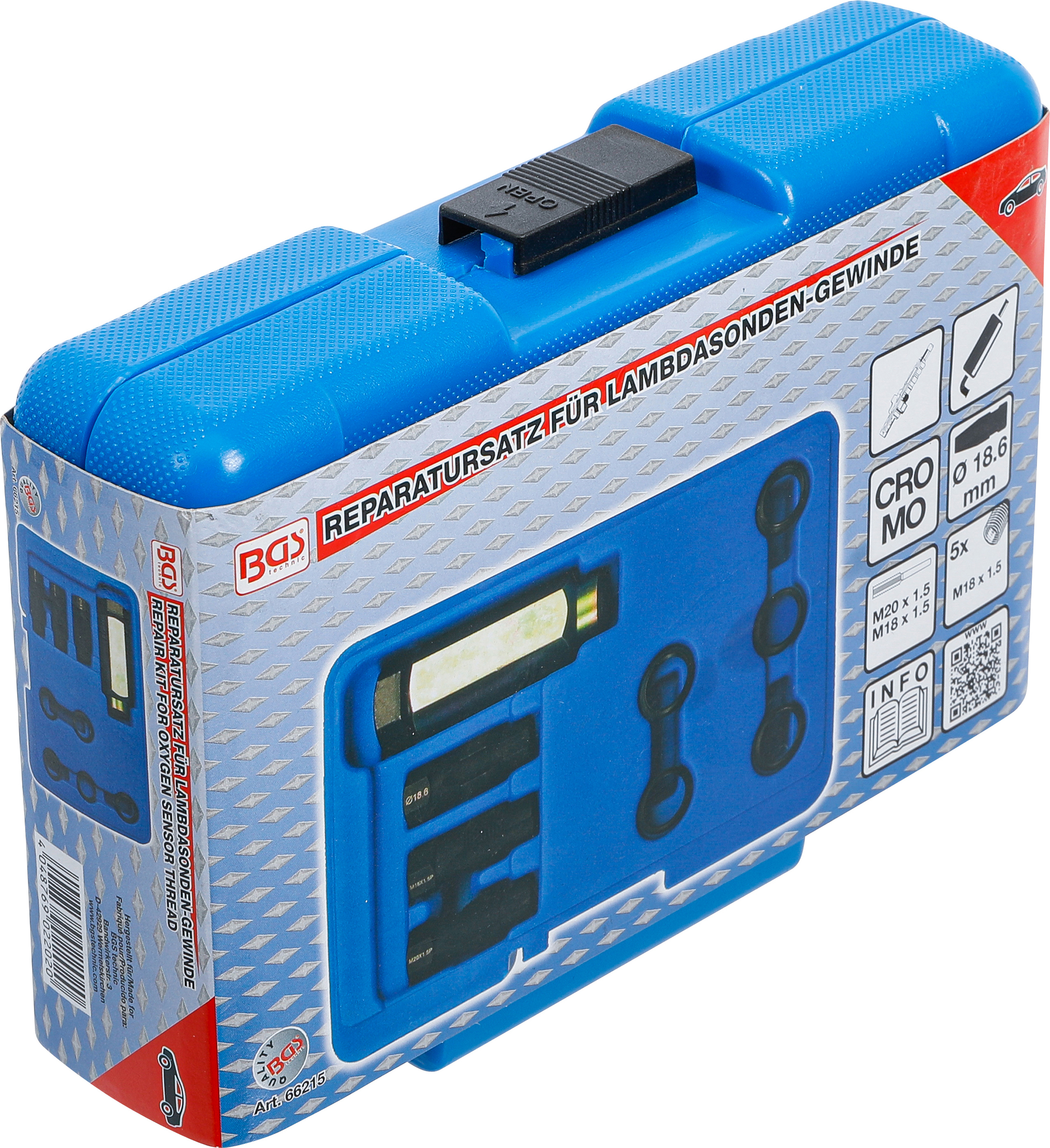 Mit dem hochwertigen BGS Reparatursatz für Lambdasonden-Gewinde können Sie beschädigte oder defekte Gewinde an Lambdasonden effizient und dauerhaft instandsetzen. Der Satz ermöglicht das präzise Aufreiben und Nachschneiden von Lambdasondengewinden, um eine sichere Befestigung der Sonde zu gewährleisten. Dadurch ersparen Sie sich den kostspieligen Austausch ganzer Hosenrohre oder Abgaskomponenten.