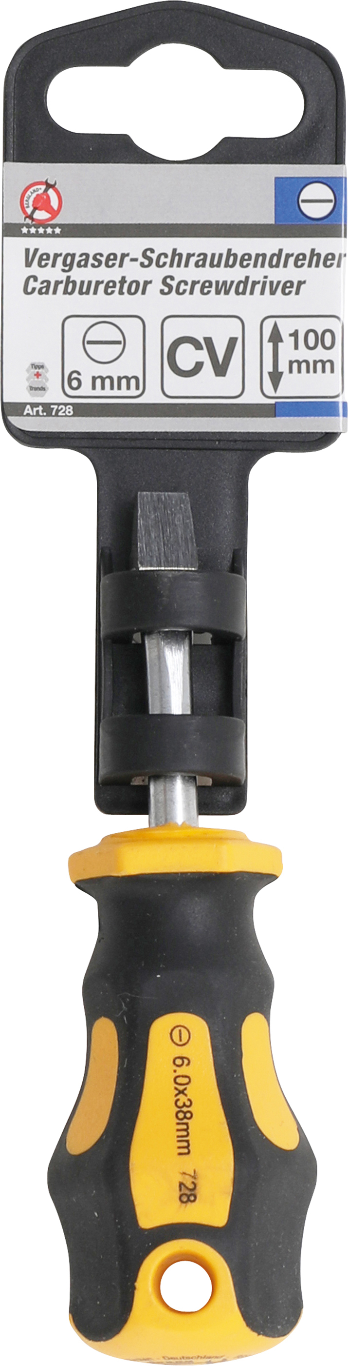 - 1x Vergaser-Schraubendreher Schlitz 6 mm, Klingenlänge 38 mm