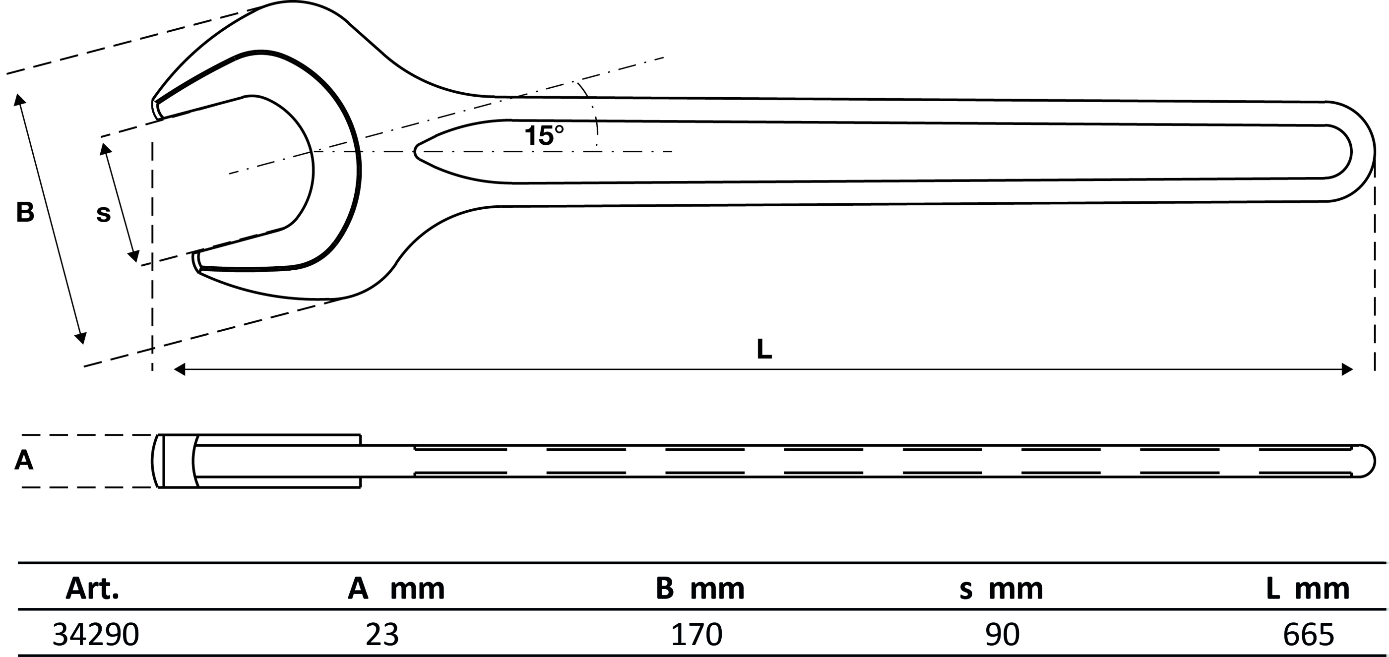 - 1x Einmaulschlüssel DIN 894 SW 90 mm