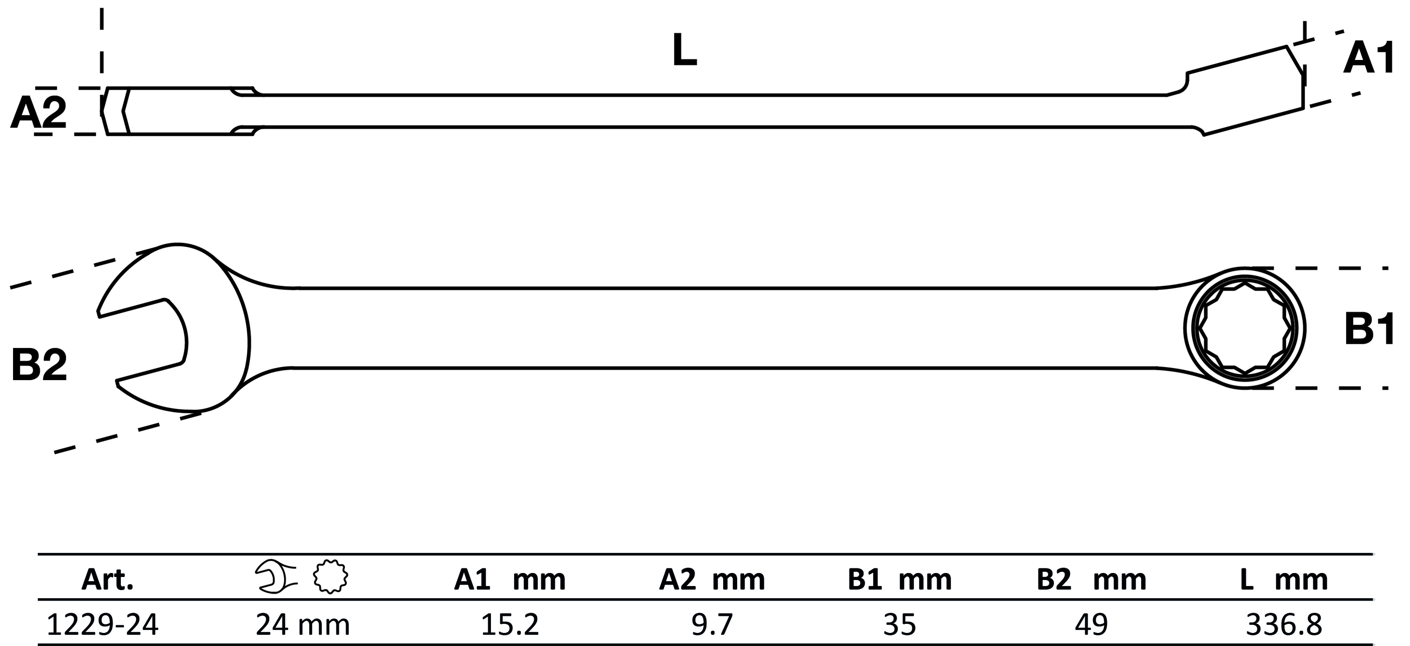 - 1x Maul-Ringschlüssel extra lang SW 24 mm