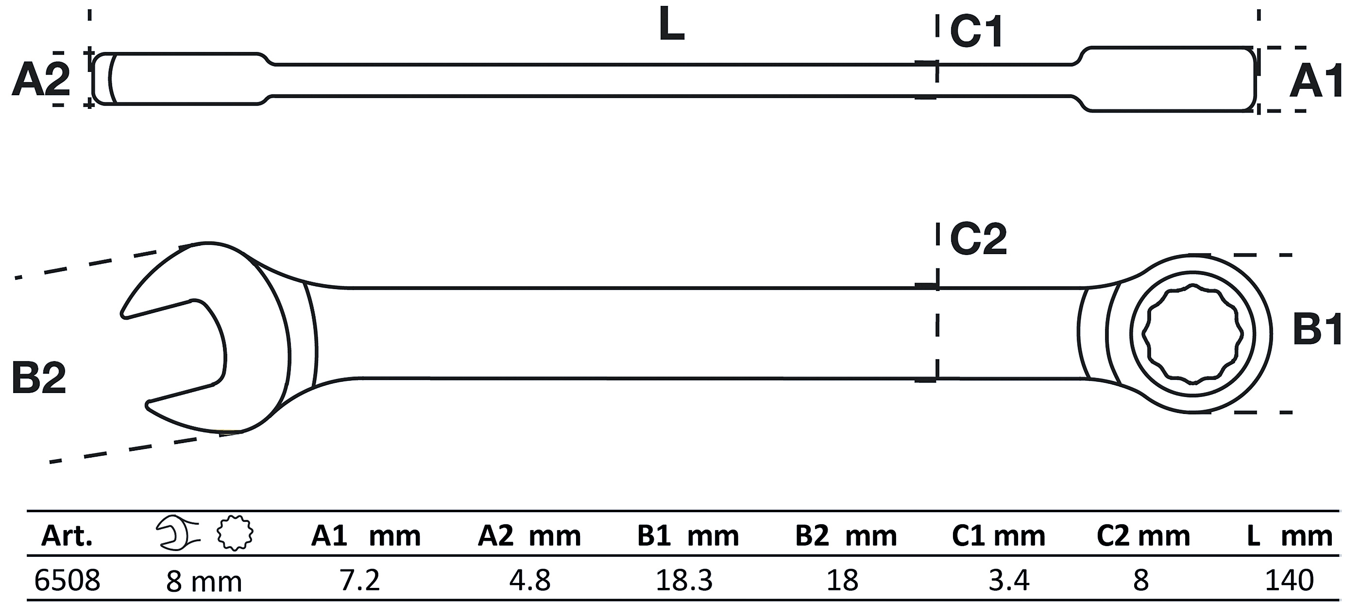- 1 × BGS Ratschenring-Maulschlüssel SW 8 mm