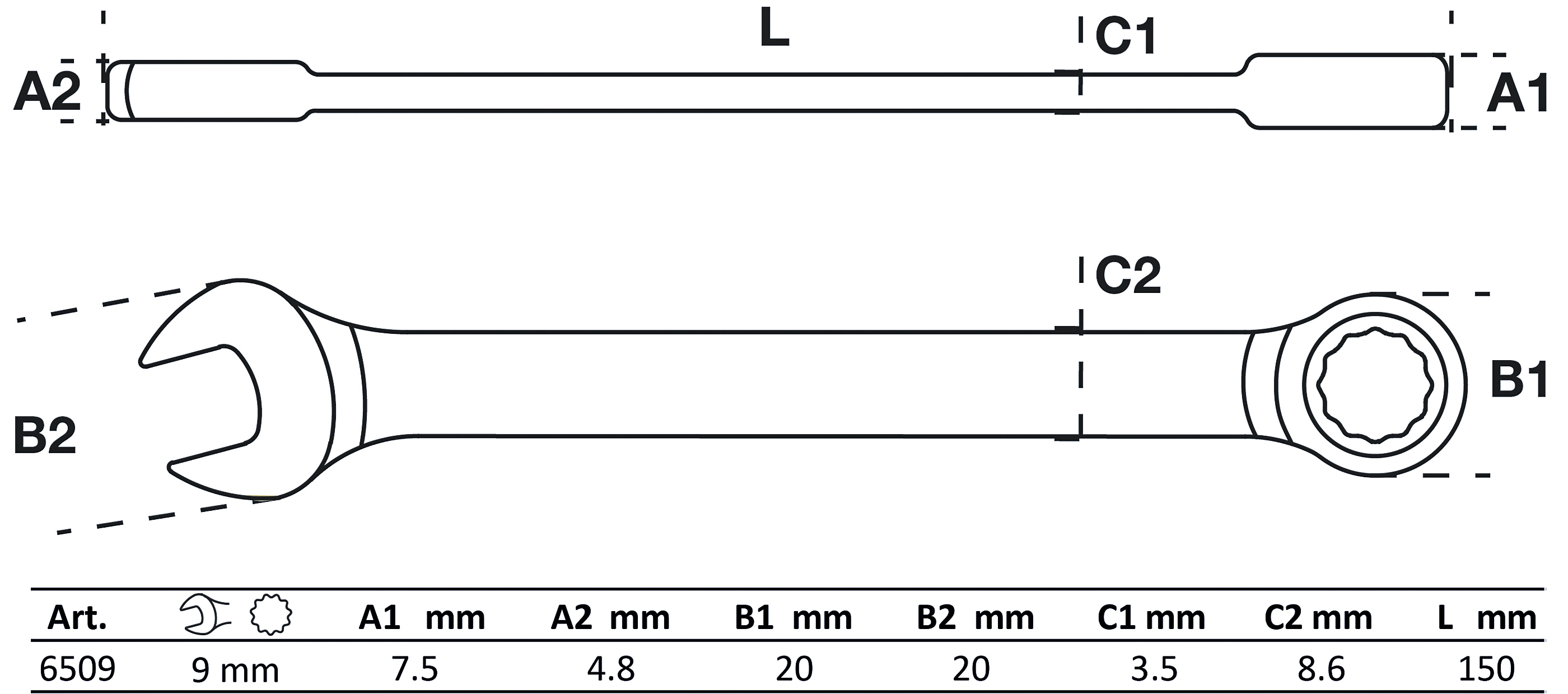 - 1x Ratschenring-Maulschlüssel SW 9 mm