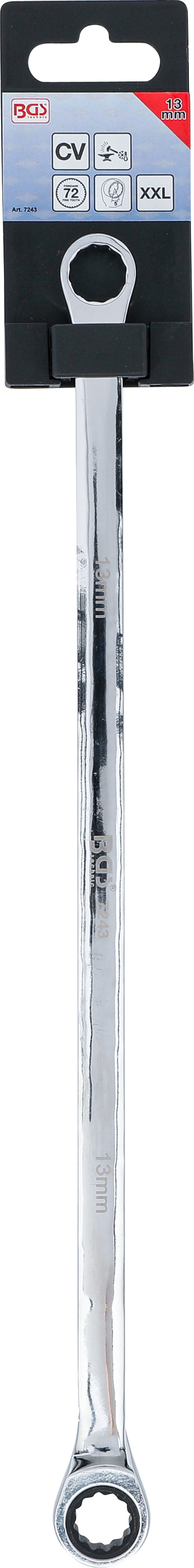 - 1x Ratschenring- und Ringschlüssel 13 mm, extra lang (295 mm)