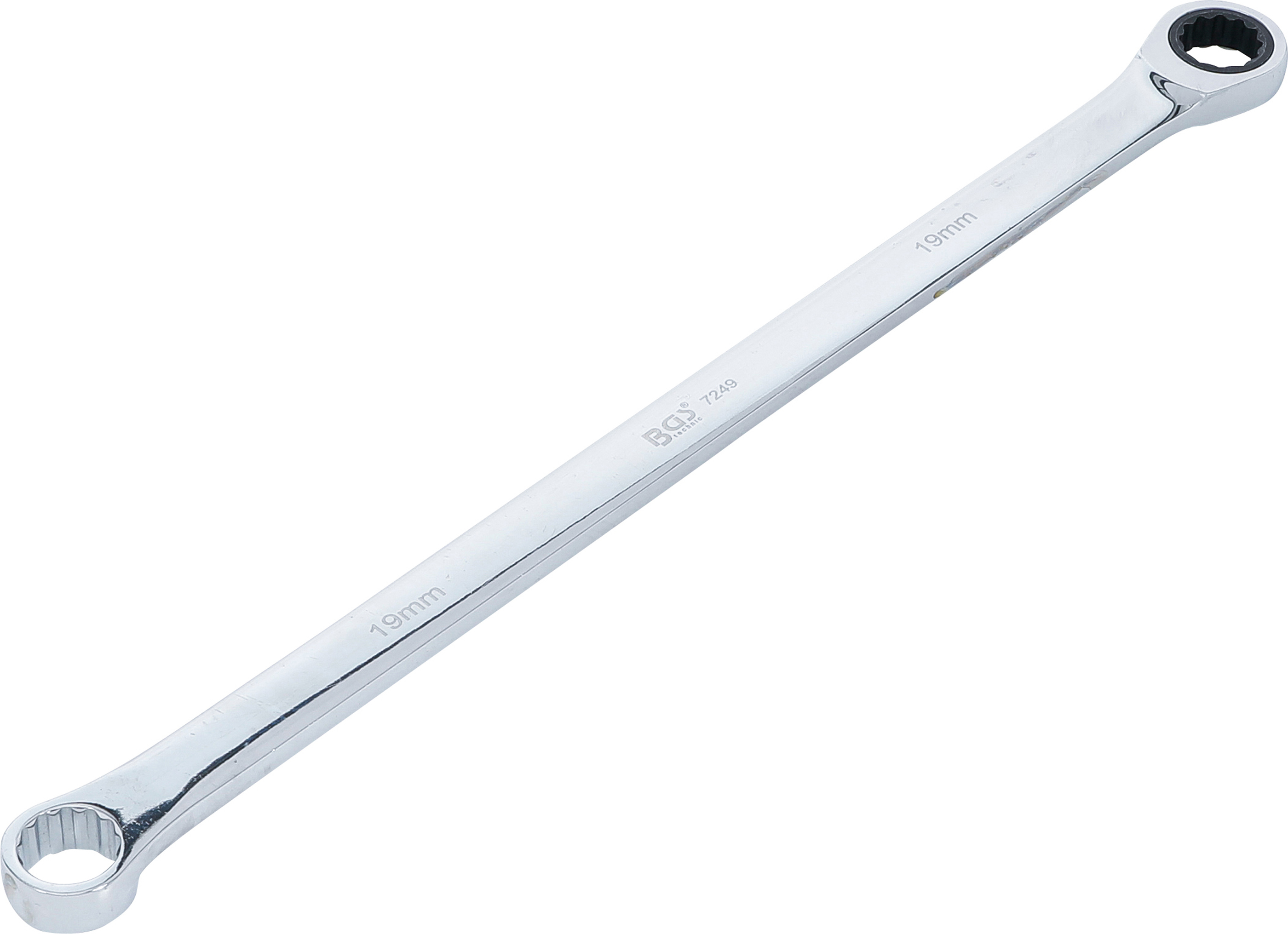 Dieser hochwertige Ratschenringschlüssel in der Größe SW 19 mm überzeugt durch seine extra lange Ausführung (401 mm) und ermöglicht so eine besonders kraftvolle und präzise Drehmomentübertragung. Das Zwölfkant-Abtriebsprofil sorgt für optimalen Halt am Schraubenkopf, während die gerade Form maximale Kraftübertragung gewährleistet. Dank des feinverzahnten Mechanismus mit 72 Zähnen ist präzises Arbeiten auf engstem Raum möglich, da der Rückschwenkwinkel nur 5° beträgt. Der aus robustem Chrom-Vanadium-Stahl gefertigte Schlüssel bietet durch seine glatte, hochglanzverchromte Oberfläche hervorragenden Korrosionsschutz und eine angenehme Haptik. Ideal für professionelle Werkstätten und ambitionierte Heimwerker, die Wert auf Qualität und Langlebigkeit legen.