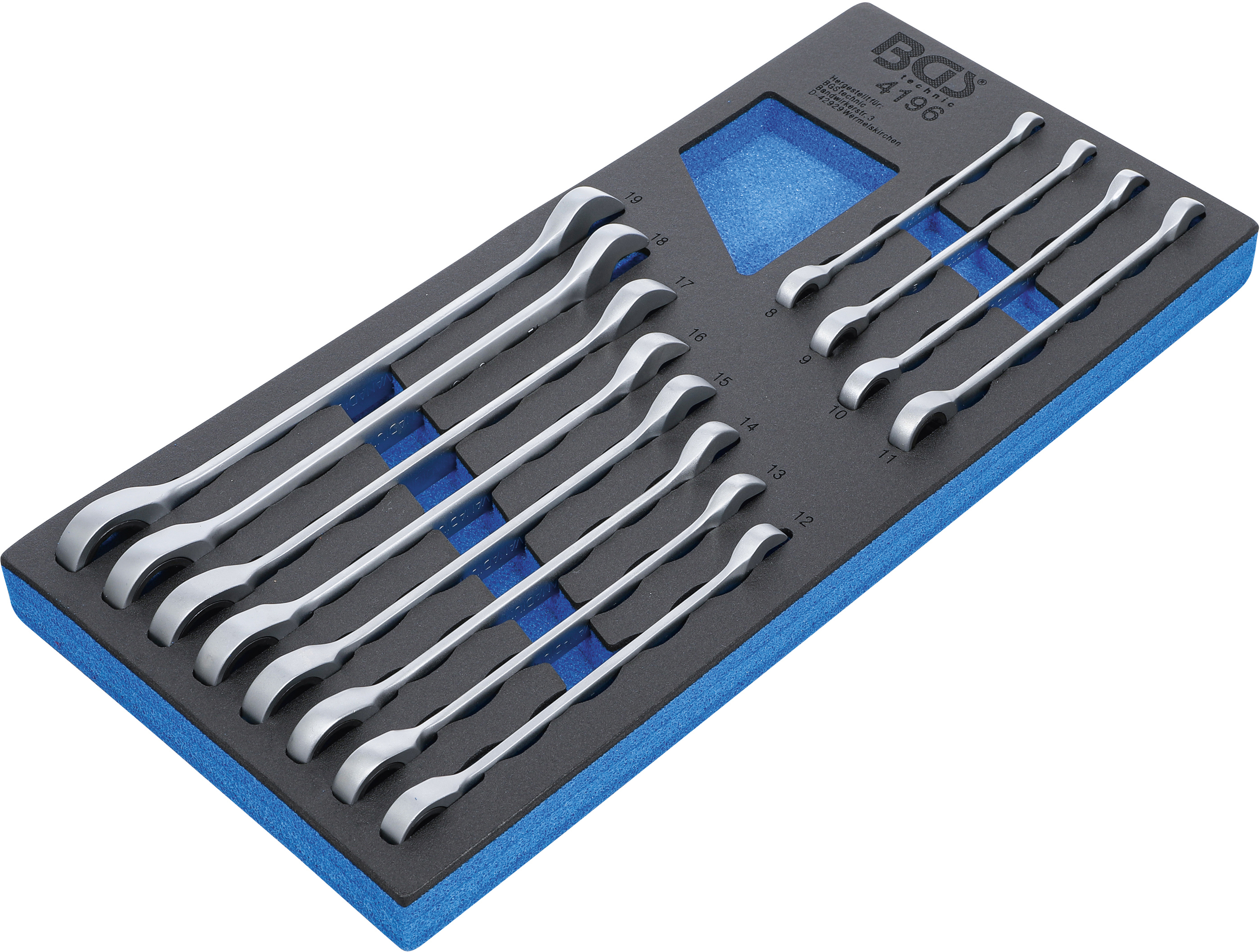 Produktinformationen "Werkstattwageneinlage 1/3: Ratschenring-Maulschlüssel-Satz 12-tlg. SW 8–19 mm"