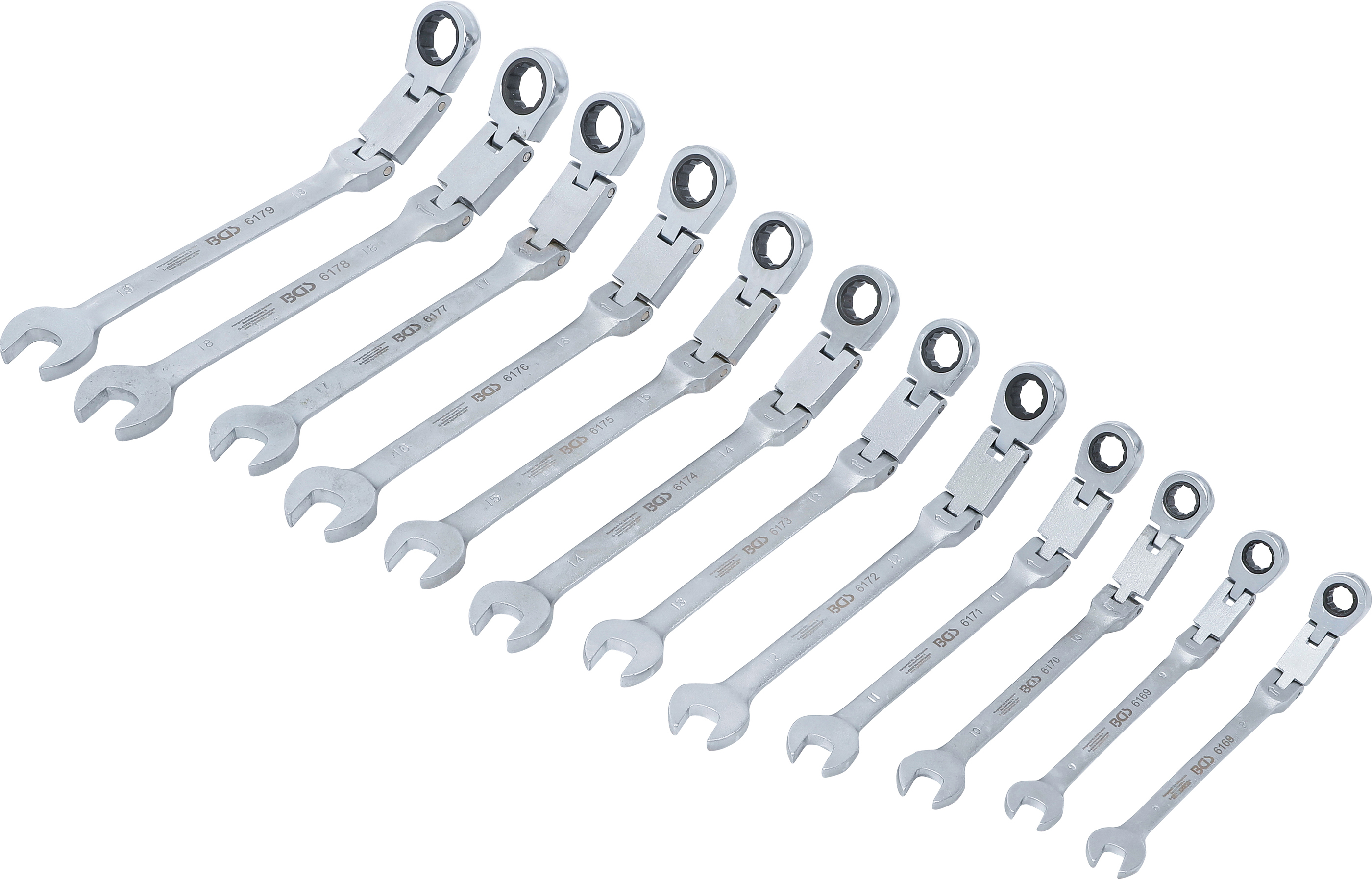 Produktinformationen "Doppelgelenk-Ratschenring-Maulschlüssel-Satz abwinkelbar SW 8–19 mm 12-tlg."
