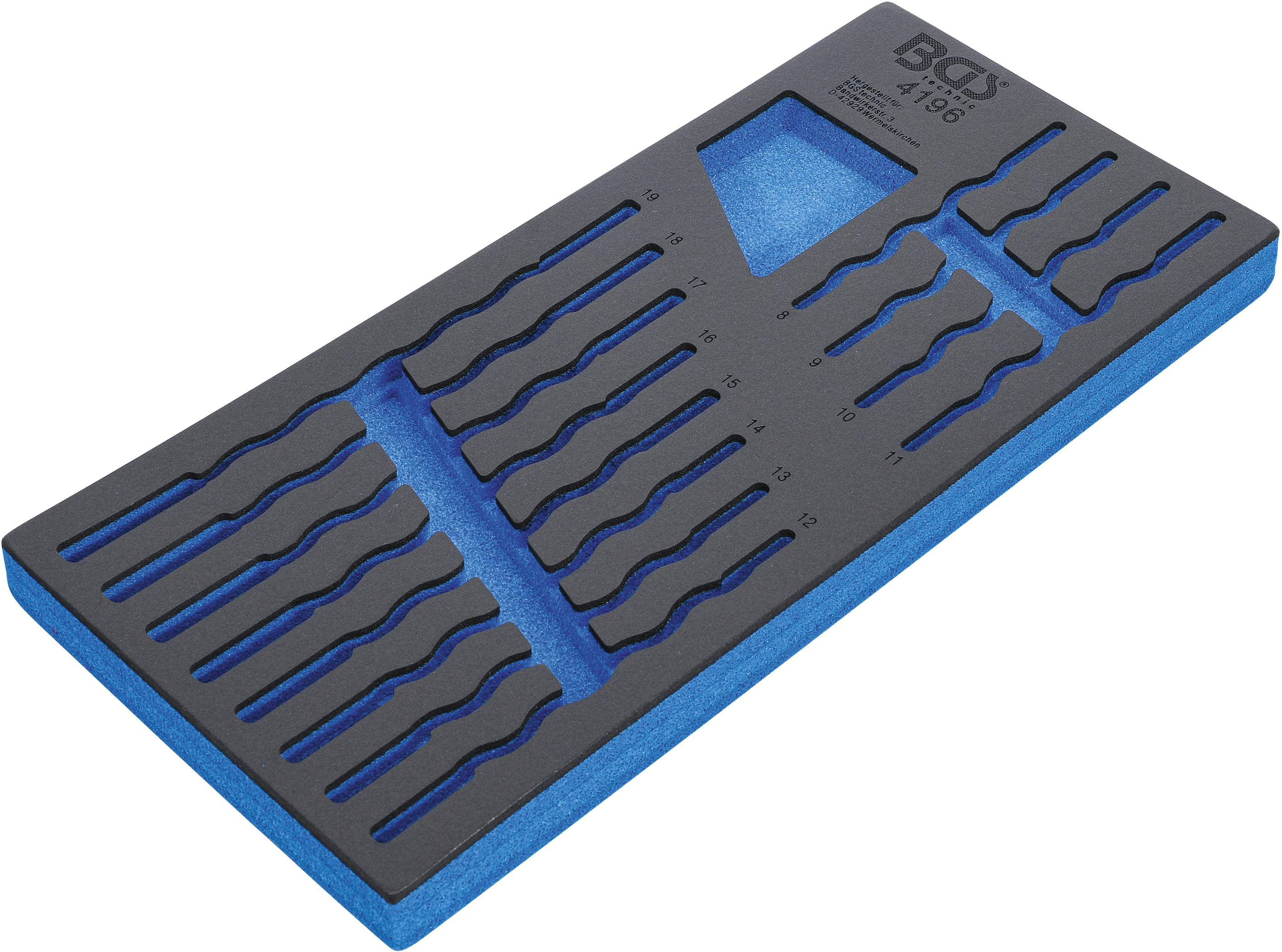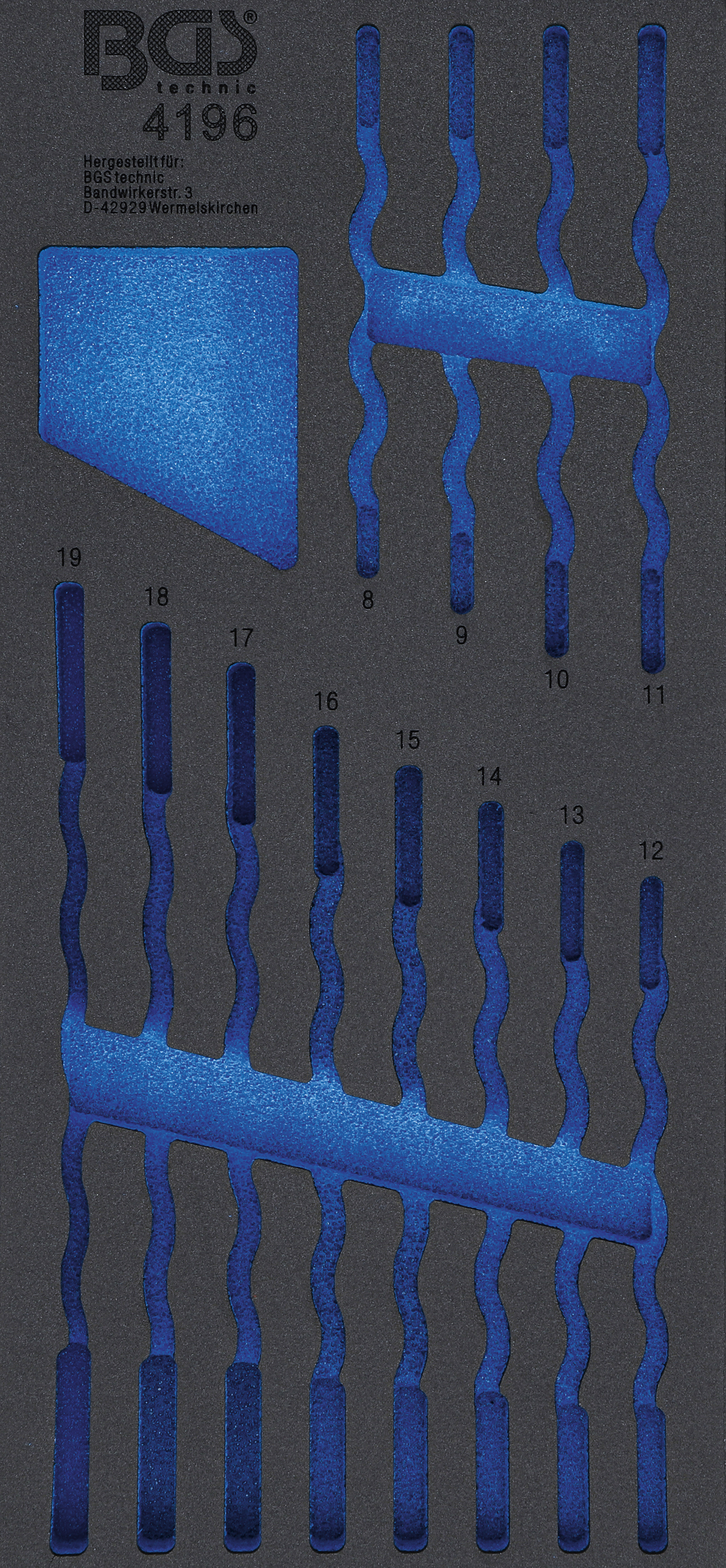 Diese hochwertige Werkstattwageneinlage 1/3 leer ist aus robustem Hartschaum gefertigt und ideal geeignet, um Ihre Werkzeuge sicher und übersichtlich zu verstauen. Sie wurde speziell passend für Art. 4196 entwickelt und ist kompatibel mit allen BGS Werkstattwagen. Das strapazierfähige Material sorgt für Langlebigkeit und schützt Ihre Werkzeuge zuverlässig vor Beschädigungen.