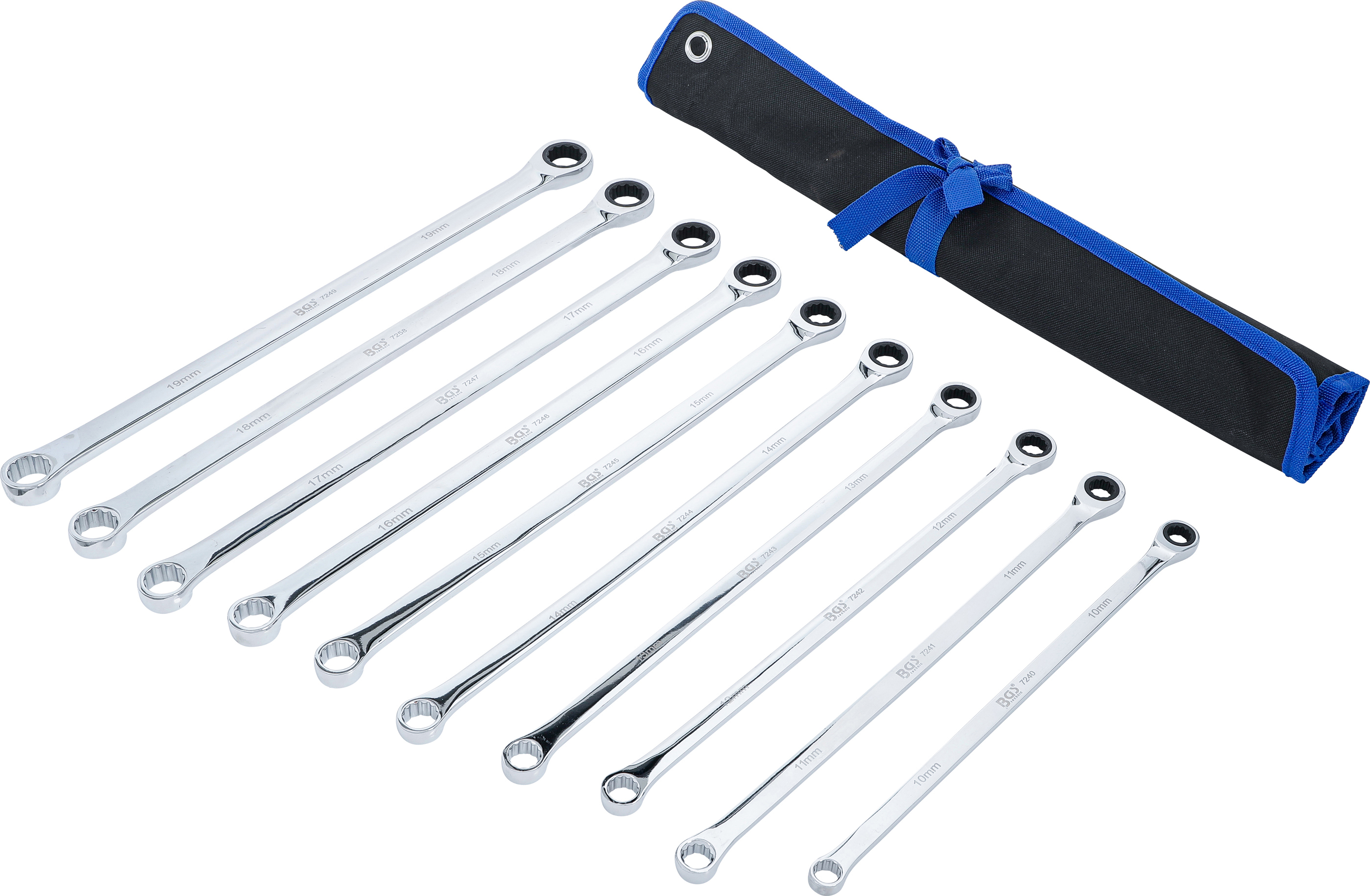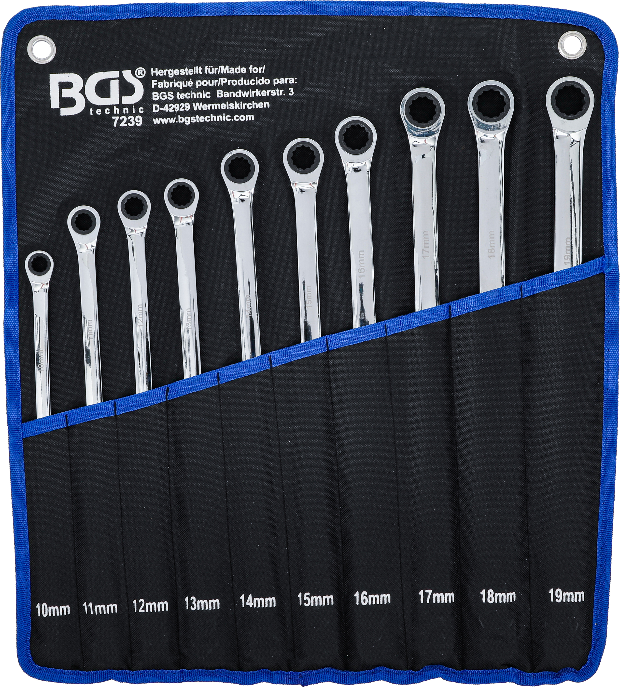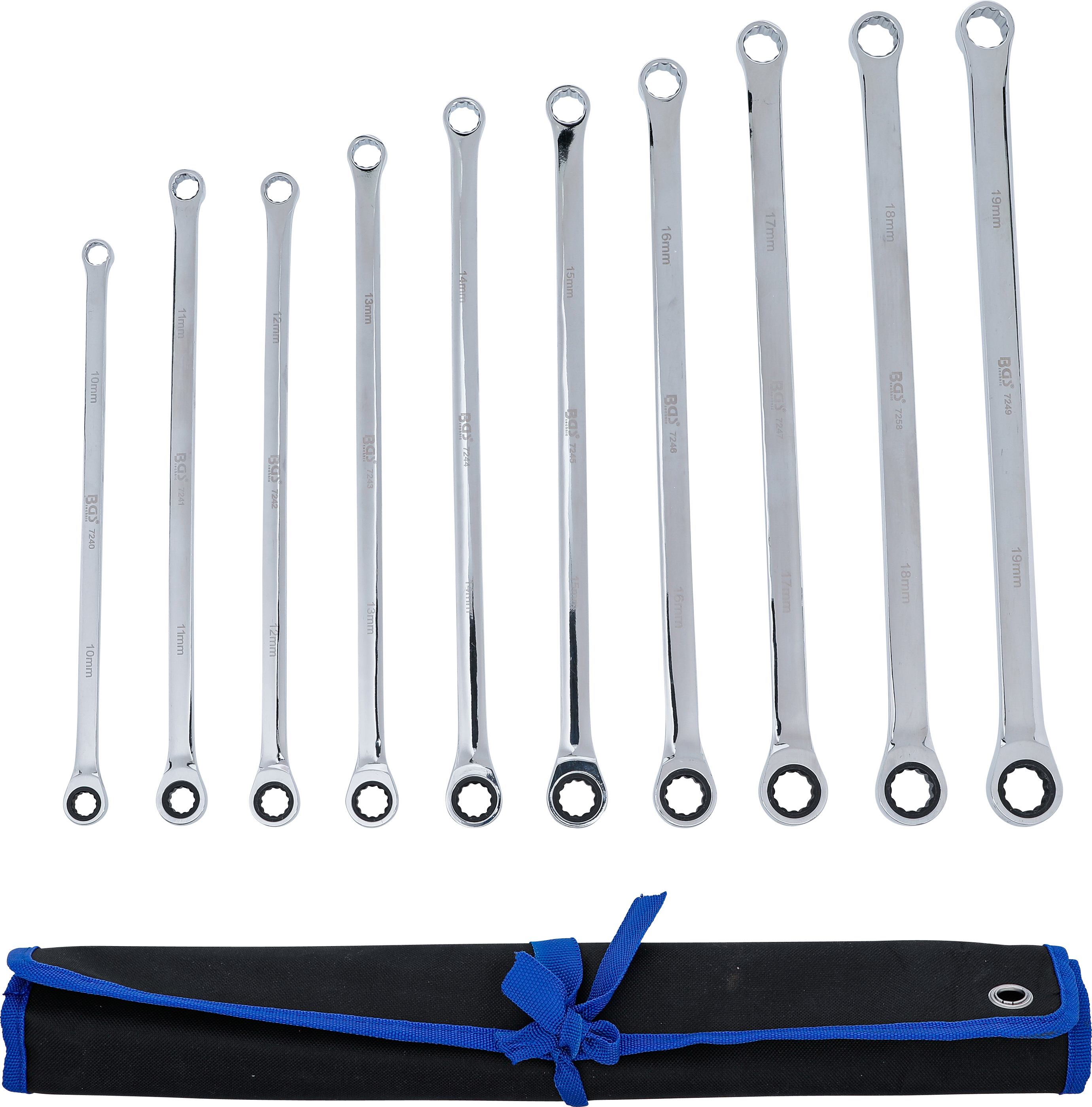 Produktinformationen "Ratschenring- und Ringschlüssel-Satz extra lang SW 10–19 mm 10-tlg."
