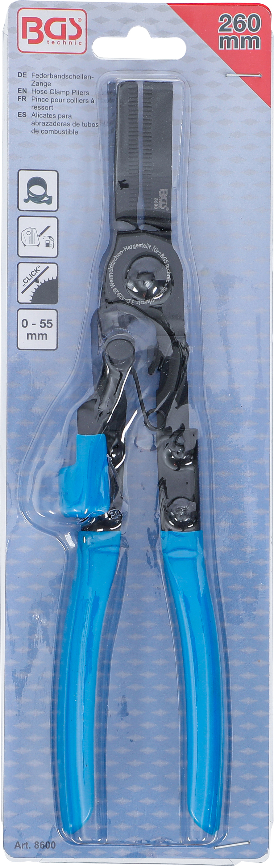 Diese professionelle Federbandschellen-Zange mit einer Länge von 260 mm wurde speziell für die Arbeit an Raumspar-Federbandschellen entwickelt. Die integrierte Ratschenmechanik hält die Schelle sicher in geöffneter Position, sodass Sie mühelos Schläuche montieren oder demontieren können. Dank ihrer kompakten Bauweise eignet sich die Zange ideal für schwer zugängliche Bereiche im Motorraum. Sie eignet sich universell für gängige Fahrzeugtypen und ist besonders hilfreich bei der Arbeit an modernen Kraftstoffleitungen von VAG-Fahrzeugen.