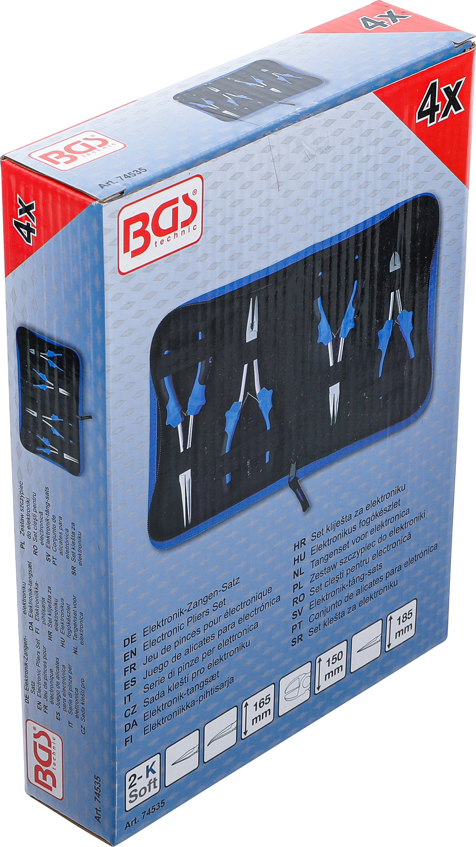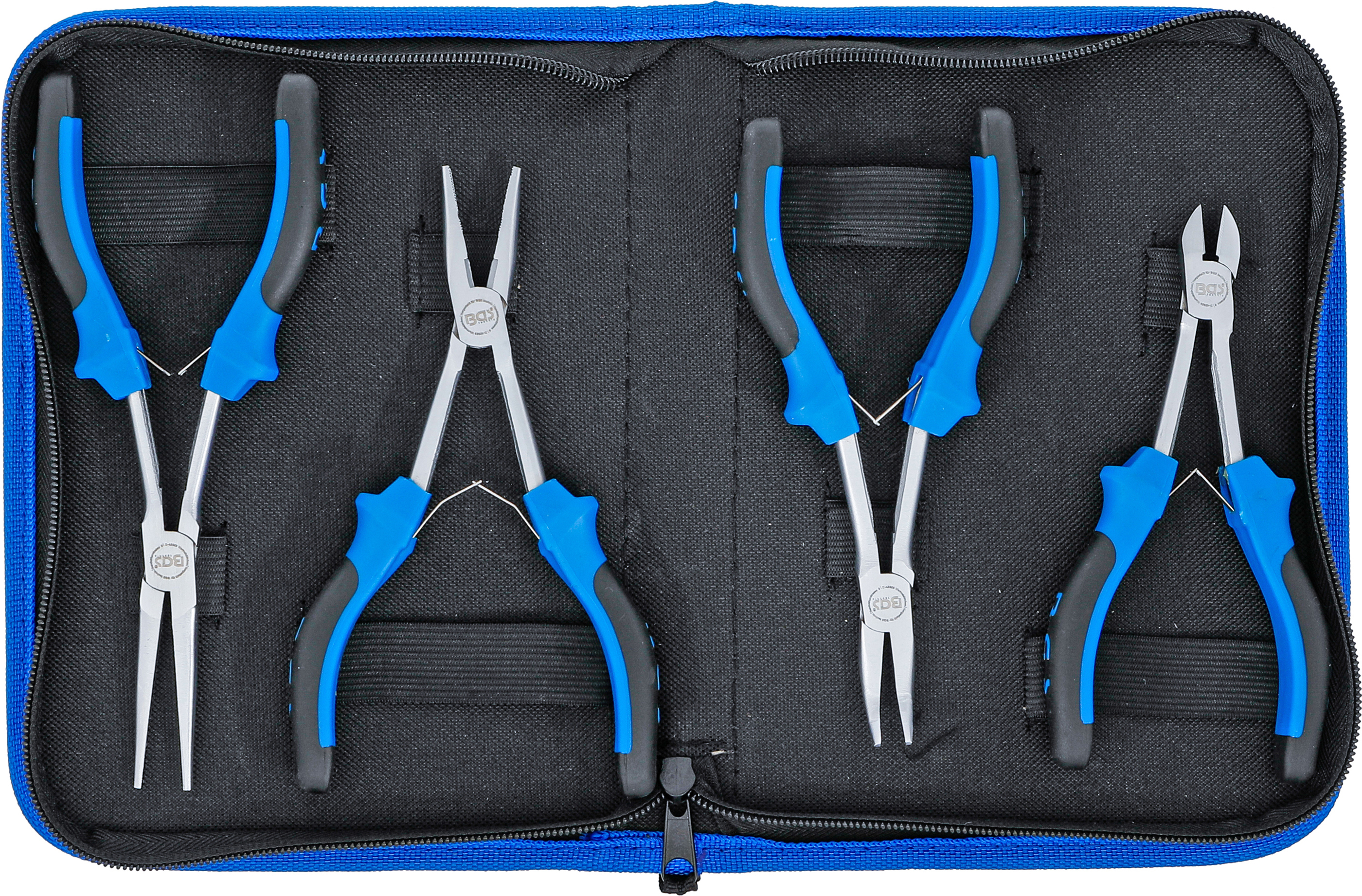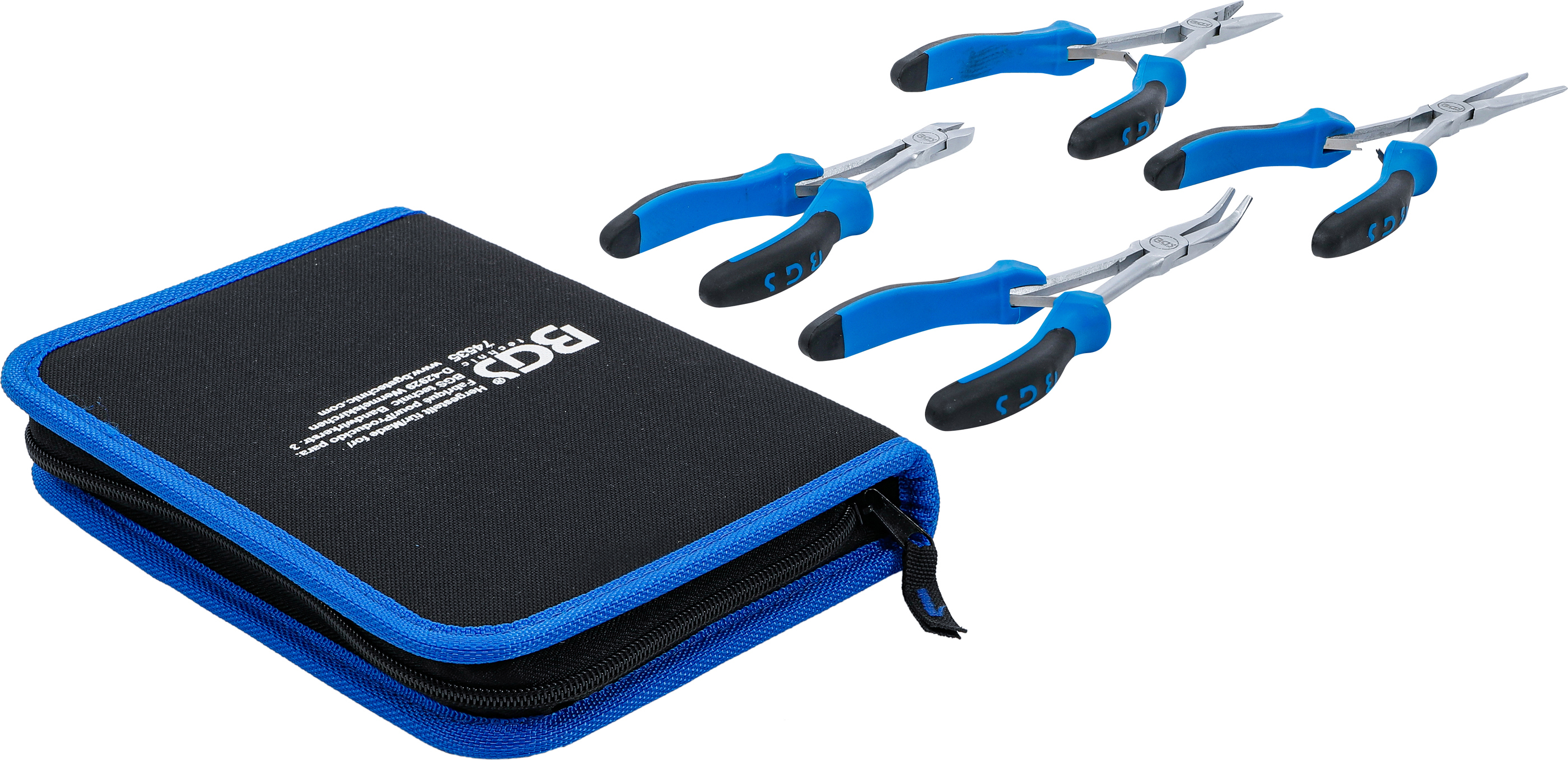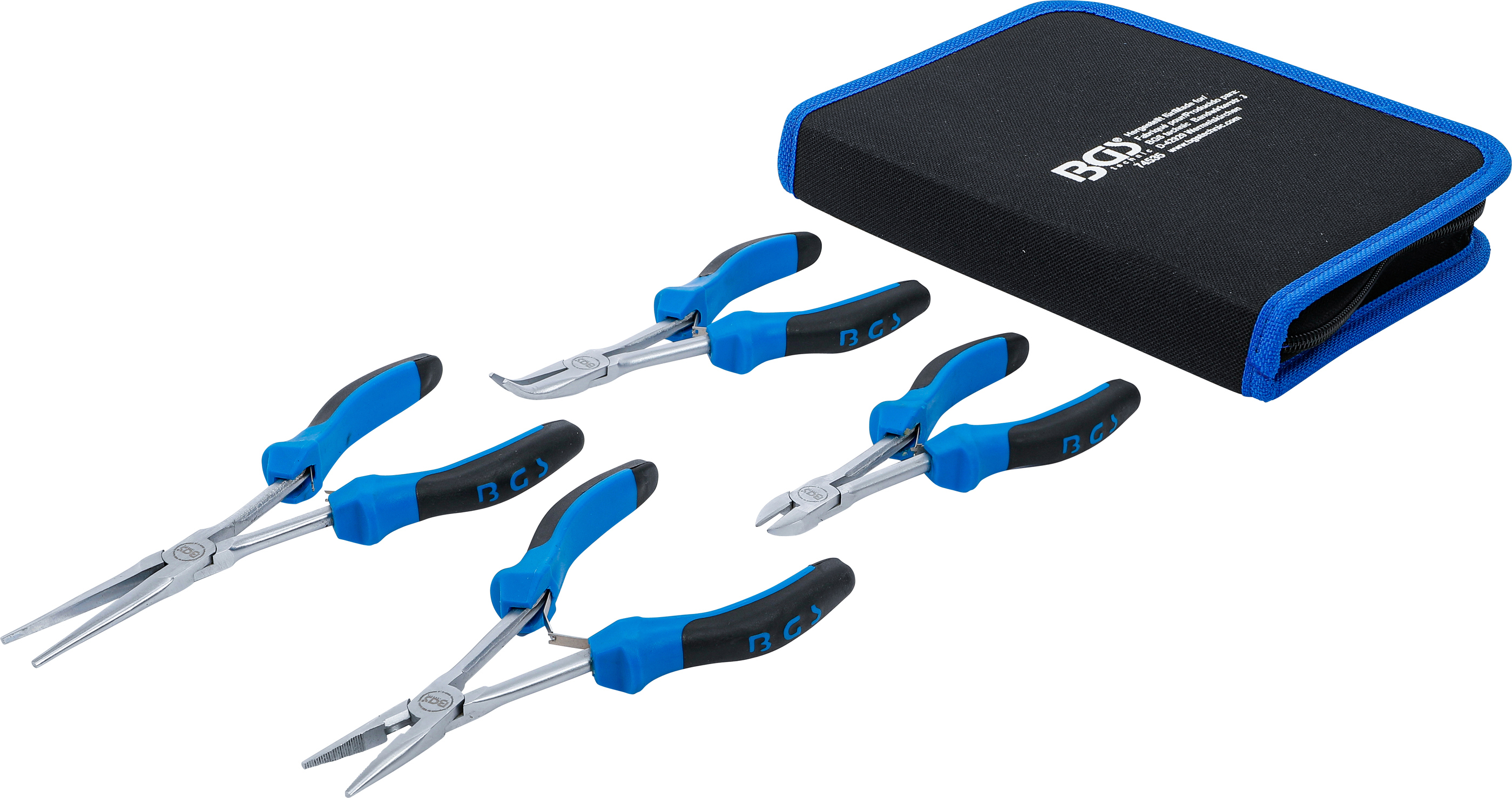 Der 4-teilige Elektronik-Zangen-Satz ist ideal für präzises Arbeiten in der Feinmechanik, Elektronik und Werkstatt. Dank der extra langen Ausführung erreichen Sie mühelos schwer zugängliche Stellen. Alle Zangen bestehen aus hochwertigem, vernickeltem Werkzeugstahl und sind mit ergonomisch geformten 2-Komponenten-Griffen ausgestattet. Die innenliegende Feder sorgt für ein sanftes, gleichmäßiges Öffnen und komfortables Handling bei wiederholten Arbeiten. Das schlanke Langhalsdesign und das eingelegte Gelenk ermöglichen präzises Schneiden und Greifen, selbst unter engen Platzverhältnissen. Geliefert wird der komplette Satz in einer robusten, praktischen Reißverschlusstasche, die ein sicheres Verstauen und Transportieren aller Werkzeuge gewährleistet.