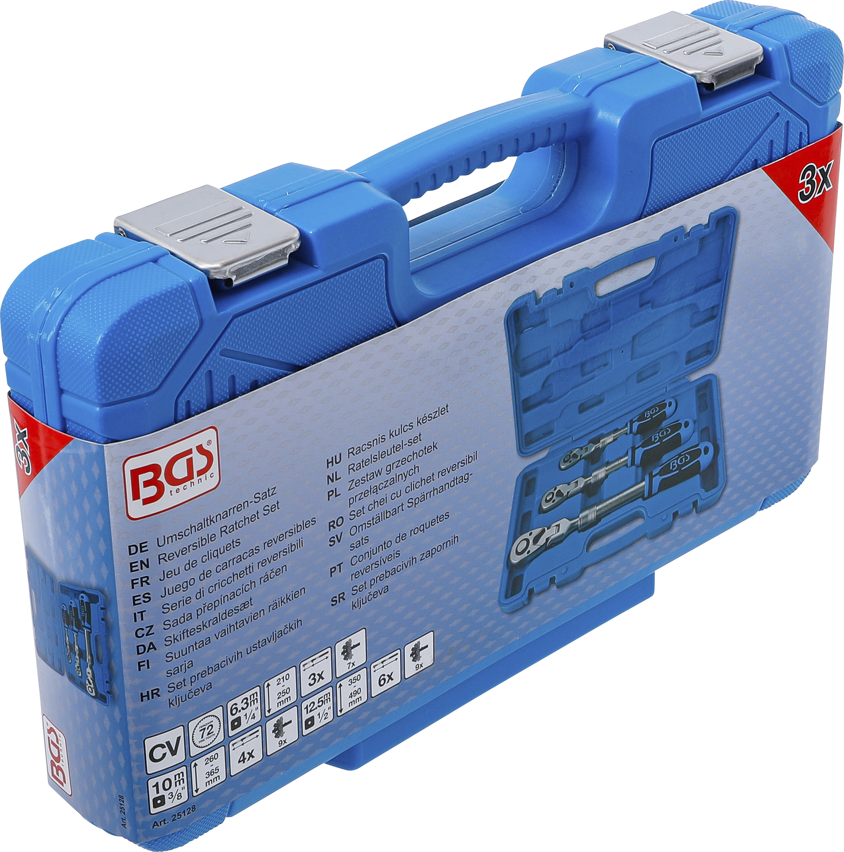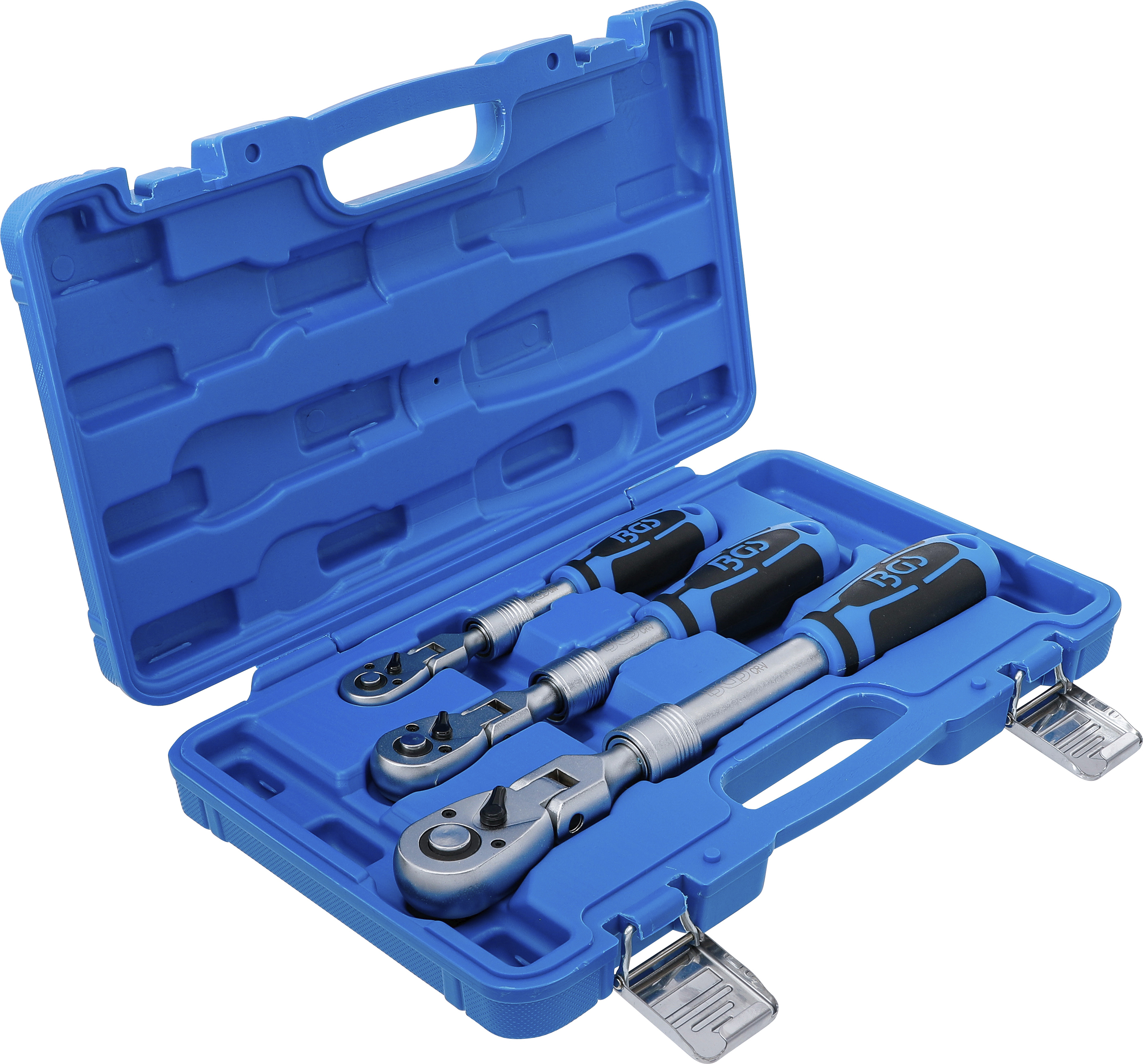 Der 3-teilige Umschaltknarren-Satz bietet höchste Flexibilität und Kraftübertragung für anspruchsvolle Schraubarbeiten. Dank des ausziehbaren und abwinkelbaren Hebelarms lassen sich auch festsitzende Schraubverbindungen mit Leichtigkeit lösen oder festziehen. Die Knarren bestehen aus robustem Chrom-Vanadium-Stahl und überzeugen durch eine präzise Verarbeitung sowie eine feinverzahnte Mechanik mit 72 Zähnen für exakte Kontrolle bei jeder Bewegung.