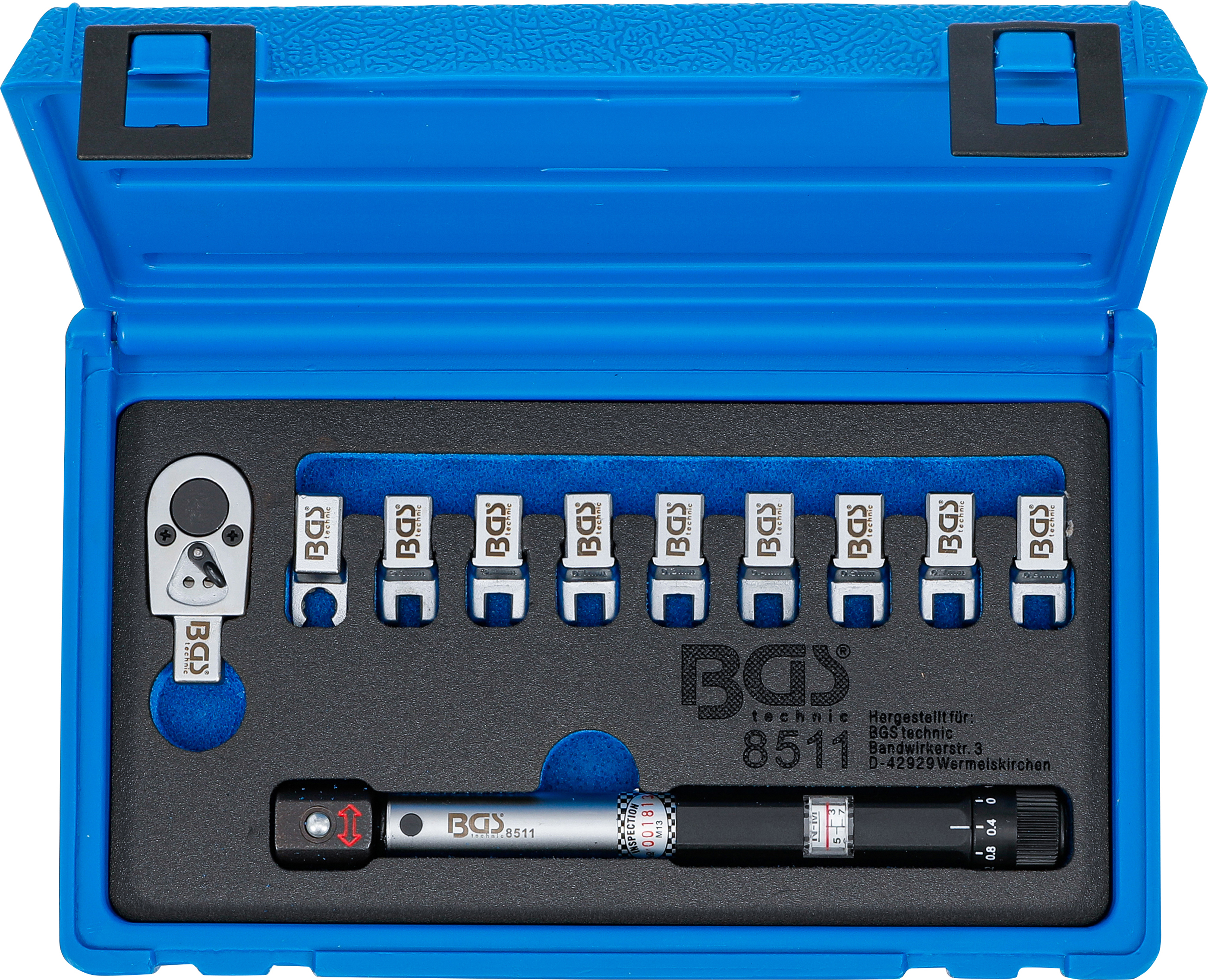 Produktinformationen "Drehmoment-Speichenschlüssel 3–15 Nm mit austauschbaren Köpfen"