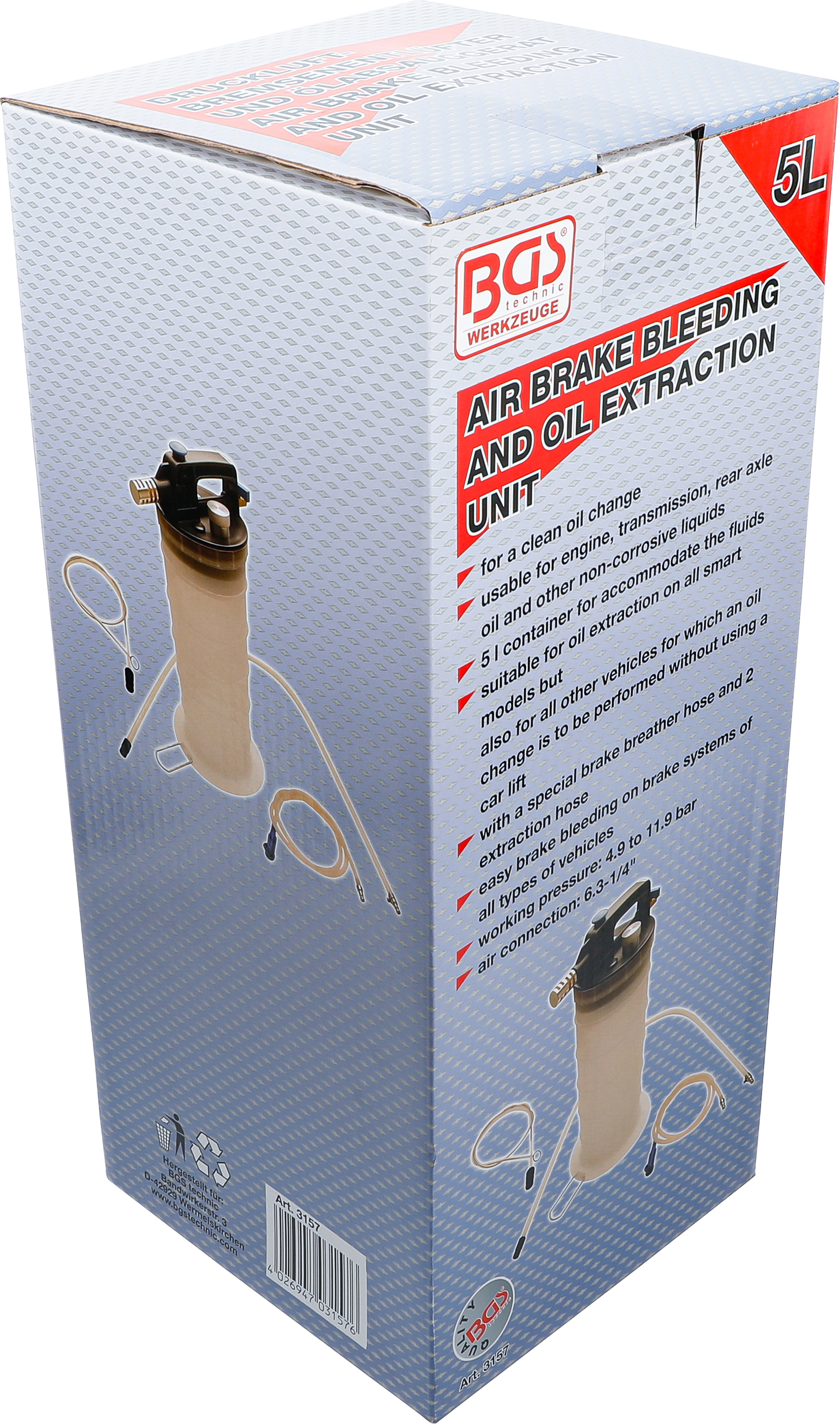 Produktinformationen "BGS Druckluft-Bremsenentlüfter und Ölabsauggerät 5L"