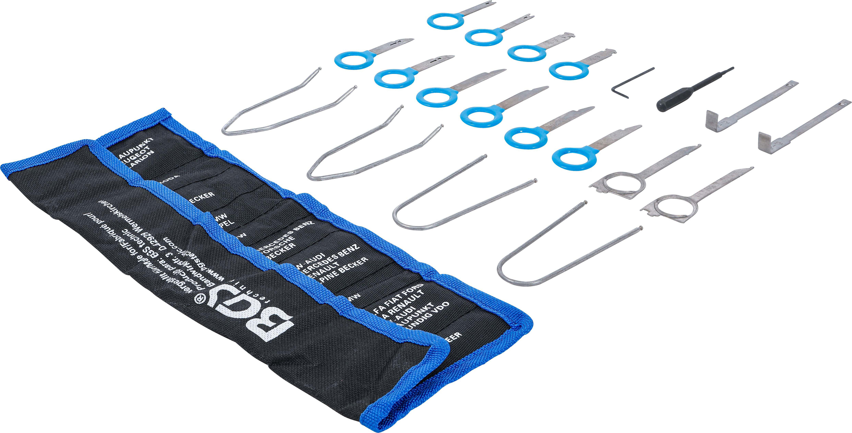 - Vielseitig einsetzbares 18-teiliges Werkzeugset für Autoradios