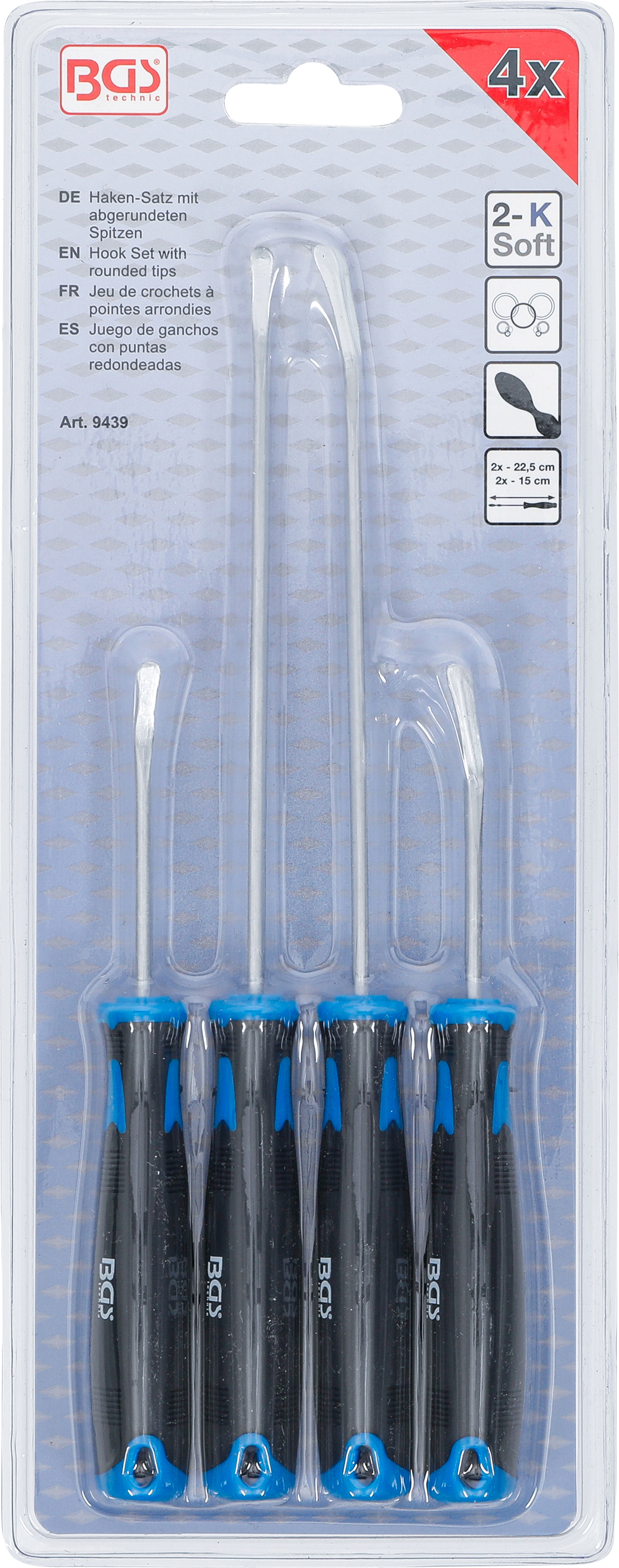 Dieser hochwertige 4-teilige BGS Haken-Satz mit abgerundeten Spitzen ist ein unverzichtbares Werkzeug für präzise Arbeiten in Werkstatt und Garage. Die Haken eignen sich ideal zum Entfernen von Dichtringen, O-Ringen und Simmerringen, ohne empfindliche Komponenten zu beschädigen. Durch die abgerundeten Spitzen werden Kratzer oder Riefen zuverlässig verhindert. Ebenso lässt sich das Set hervorragend als Aufziehhilfe bei der Montage von Schläuchen auf Flanschen, etwa an Kühlern oder Turboladern, verwenden.