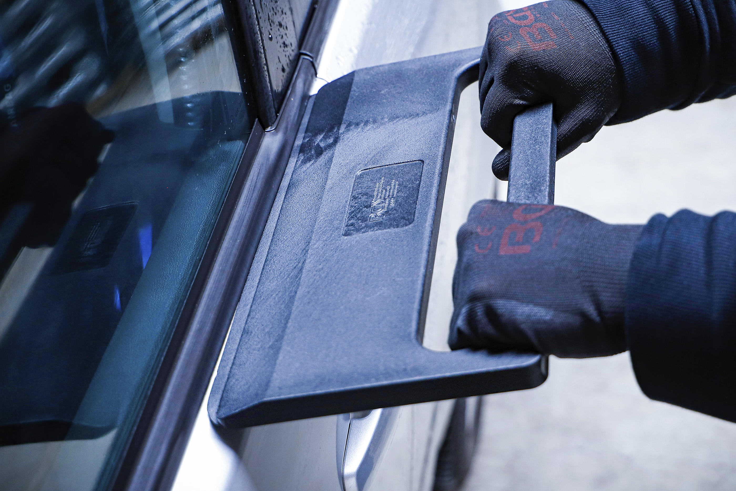Der hochwertige Fensterleisten-Hebel mit den Maßen 180 x 350 mm ist das ideale Werkzeug für die professionelle Demontage und Montage von Fahrzeugleisten. Er eignet sich hervorragend zum Entfernen von Abdeckblechen, Blenden, Schutzkappen sowie Hohl- und Zierleisten. Durch die scharf angefaste Hebelkante lässt sich das Werkzeug problemlos einführen, während die optimale Hebelwirkung über die gesamte Plattenbreite eine effiziente und sichere Nutzung gewährleistet. Dank des Halbrundprofils auf der Rückseite ist auch die fachgerechte Montage von Zierleisten mühelos möglich. Das robuste Polypropylen-Glasfaser-Material garantiert dabei hohe Stabilität und Langlebigkeit, selbst bei regelmäßiger Beanspruchung im Werkstattalltag.