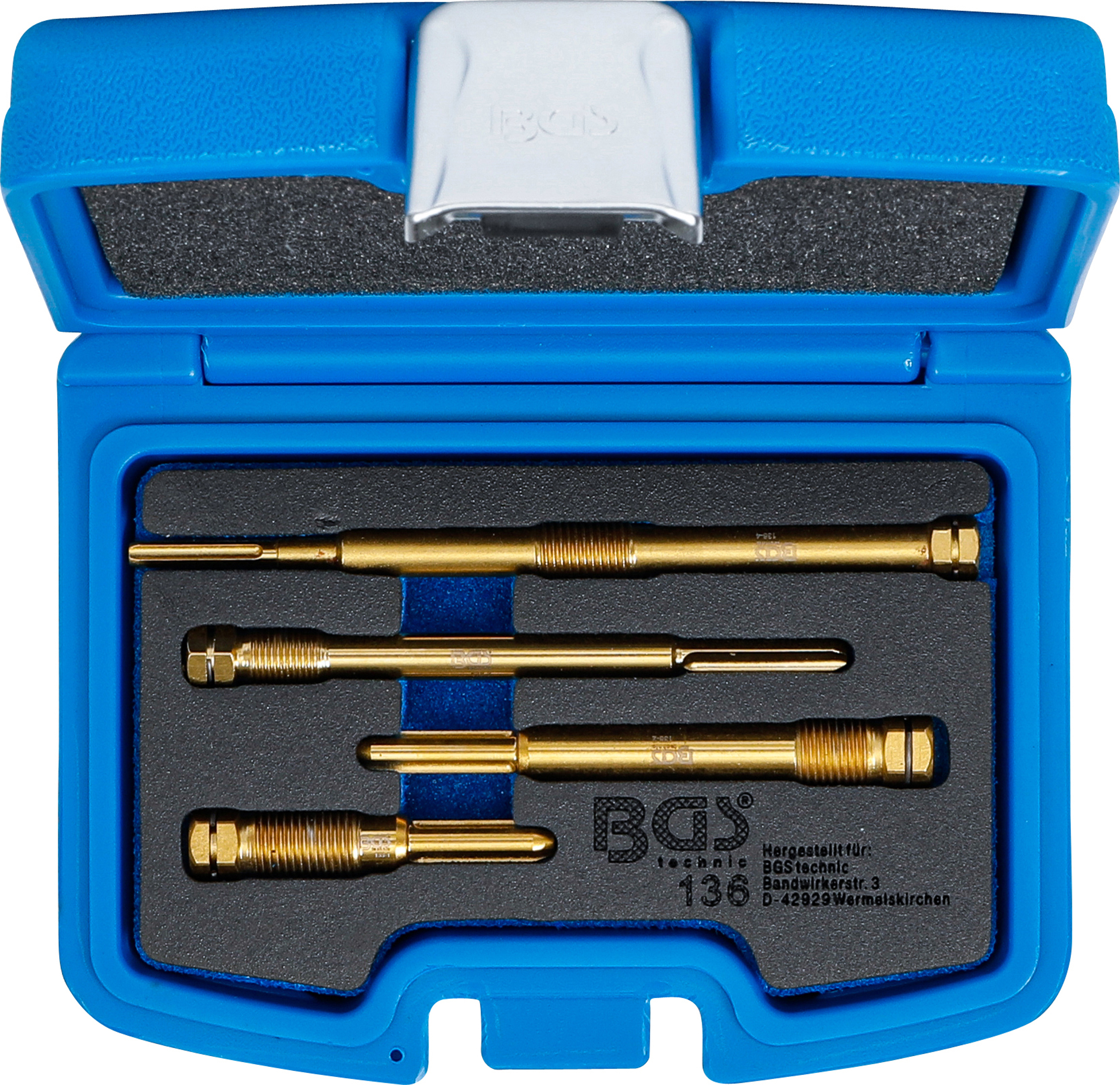 Mit diesem 4-teiligen Reibahlen-Satz für Glühkerzenbohrungen reinigen Sie effizient und präzise die Bohrungen von Glühkerzen in verschiedensten Motoren. Durch die hochwertige Fertigung aus Chrom-Molybdän-Stahl mit Titanbeschichtung profitieren Sie von einer besonders langen Lebensdauer und hoher Verschleißfestigkeit. Der Satz enthält verschiedene Reibahlen zur professionellen Aufbereitung von Gewinden und Bohrungen – ideal für Werkstätten und ambitionierte Hobbyschrauber. So stellen Sie sicher, dass die neuen Glühkerzen optimal sitzen und zuverlässig arbeiten.
