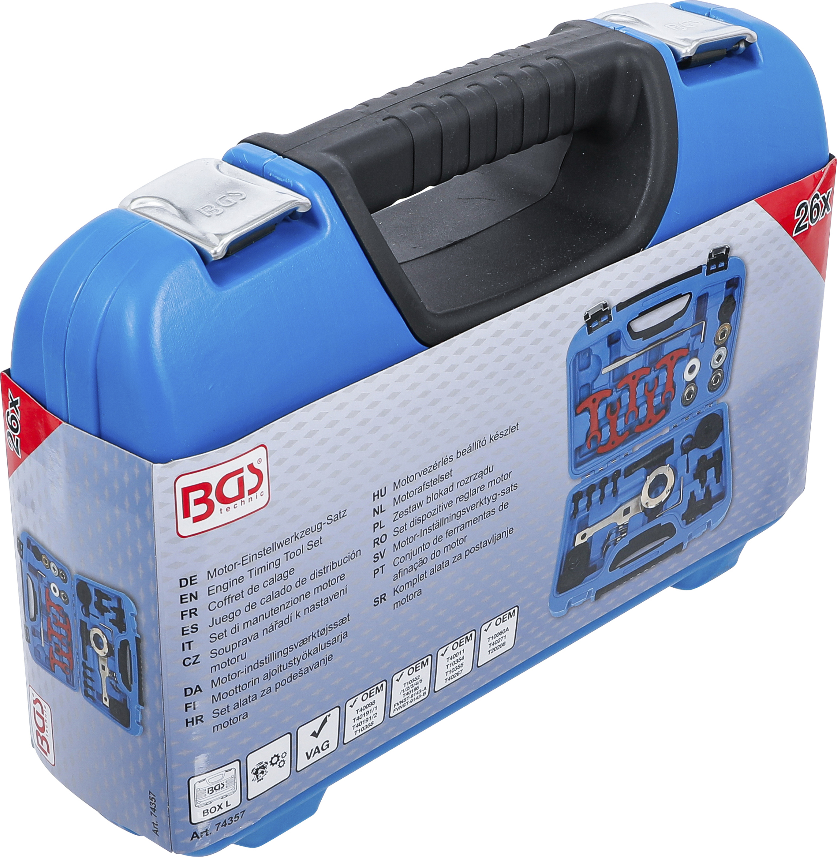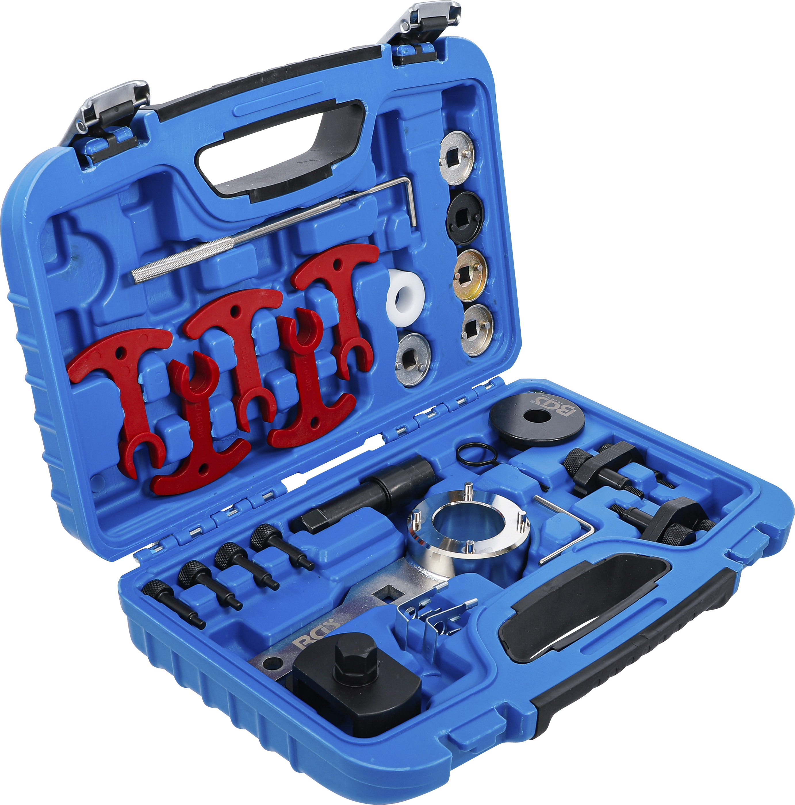 Mit diesem hochwertigen Motor-Einstellwerkzeug-Satz können Sie präzise die Steuerzeiten Ihres Motors überprüfen und korrekt einstellen. Der Werkzeugsatz wurde speziell entwickelt, um Wartungsarbeiten an 1.8L und 2.0L FSI, TSI sowie TFSI Motoren von VAG zuverlässig und sicher durchzuführen. Perfekt geeignet für den Einsatz in professionellen Werkstätten oder ambitionierte Hobbyschrauber, die Wert auf Genauigkeit und Langlebigkeit legen. Durch die präzise gefertigten Komponenten wird ein exakter Sitz und eine lange Lebensdauer gewährleistet.
