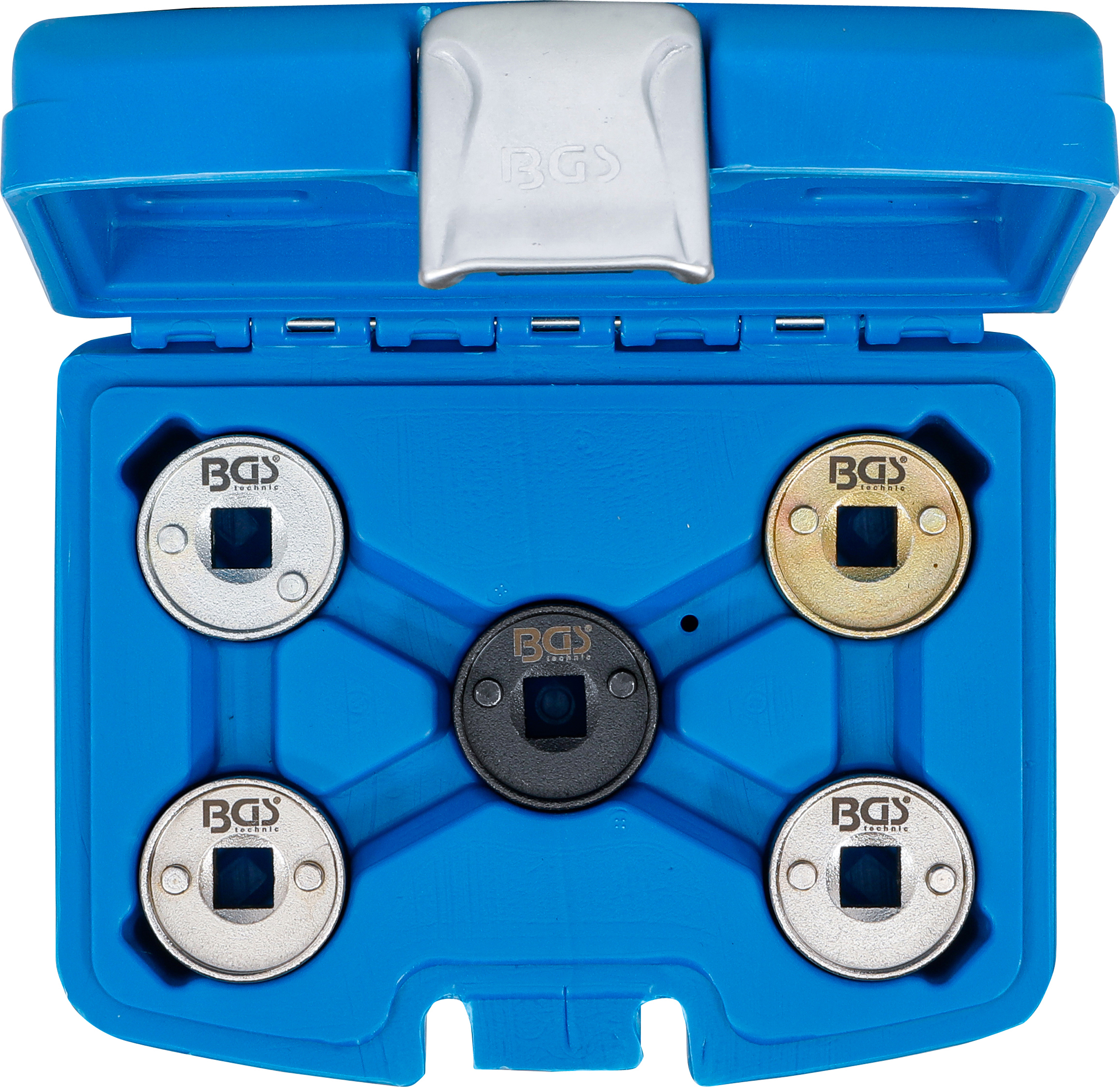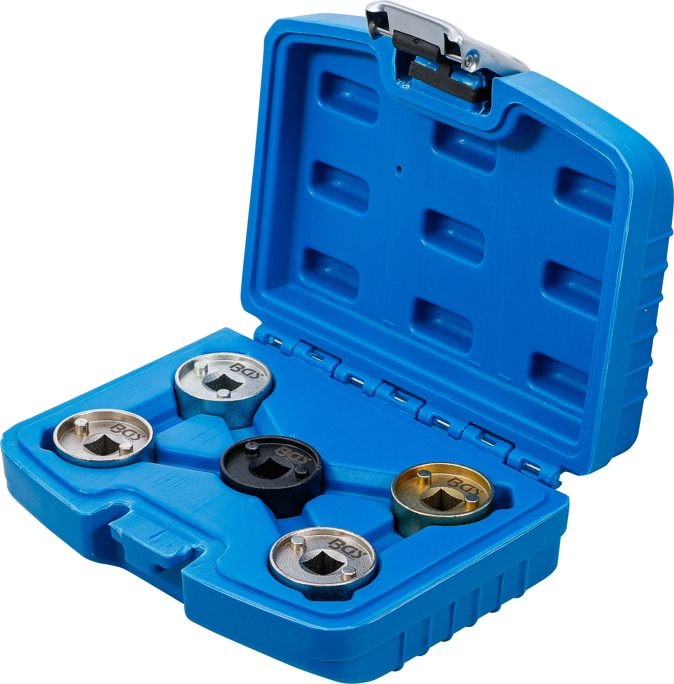 Das 5-teilige Set an Nockenwellen-Steuerventil-Einsätzen ist speziell für Arbeiten an der Nockenwellenverstellung entwickelt und bietet Ihnen höchste Präzision bei der Demontage und Montage des 4-/3-Wege-Zentralventils. Es ist passend für VAG 1.8- und 2.0-Liter-Motoren der TSI- und TFSI-Baureihen sowie für Motoren der 3. Generation und Ausführungen mit Steuerkette. Dank der exakten Passform und hochwertigen Verarbeitung lässt sich das Werkzeug sicher und effizient einsetzen – ideal für professionelle Werkstätten und ambitionierte Hobbyschrauber.