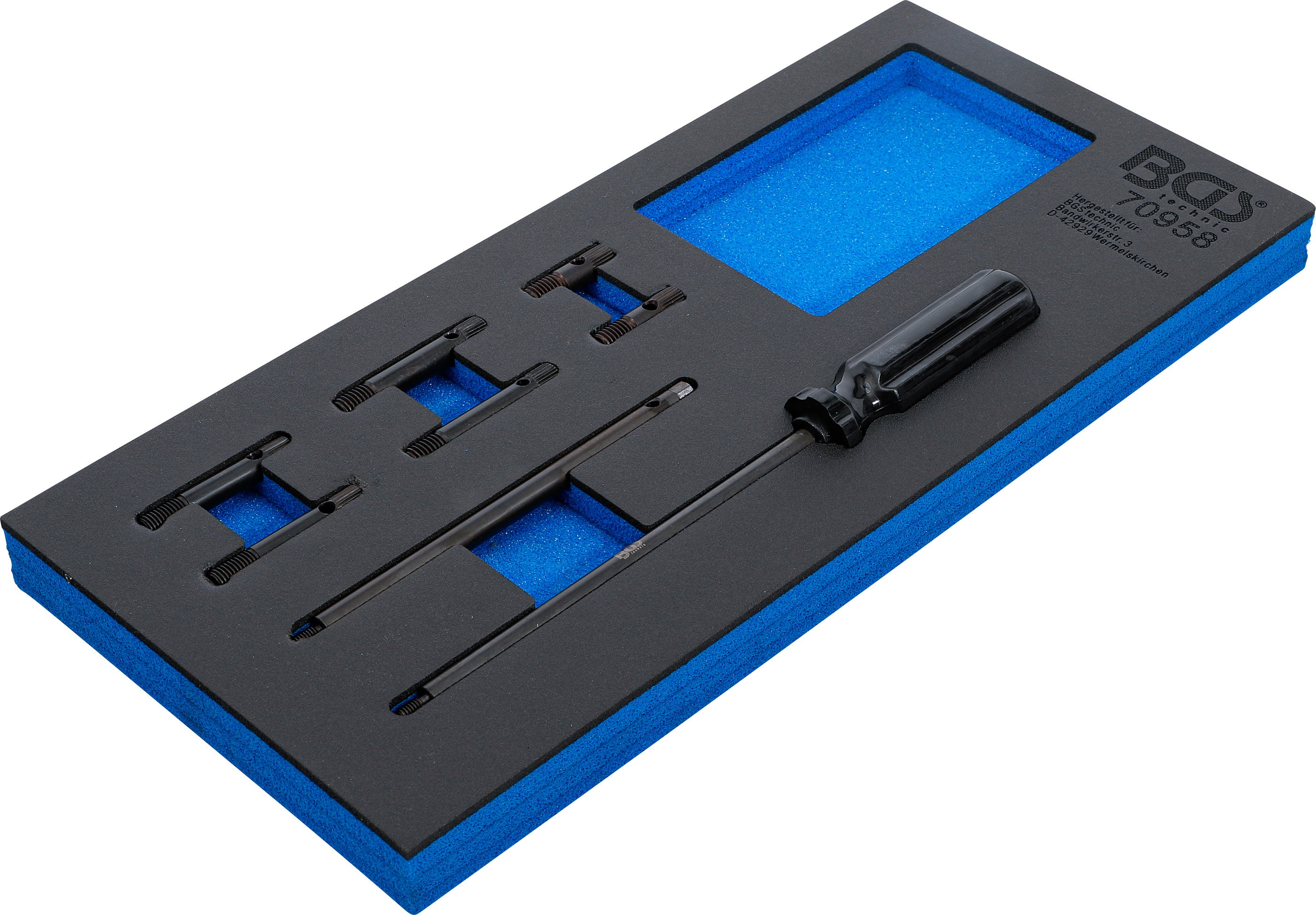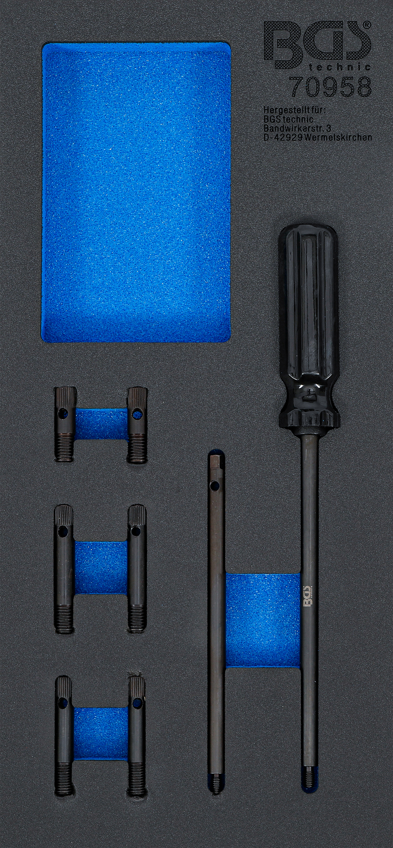 Diese Werkstattwageneinlage mit 1/3 Rastergröße enthält einen hochwertigen Ausrichtwerkzeug-Satz, der speziell zum Ausrichten von Zylinderkopfdichtungen entwickelt wurde. Das Set erleichtert die korrekte Positionierung von Dichtung und Zylinderkopf am Motorblock und verhindert Beschädigungen durch falsches Ausrichten. Es ersetzt die bei vielen VAG-Motoren nicht mehr vorhandenen Passrohre und garantiert so eine präzise Montage des Zylinderkopfs. Die praktische Einlage ermöglicht geordnetes Aufbewahren in Werkstattwagen und sorgt für schnellen Zugriff während Reparaturen oder Motorarbeiten.