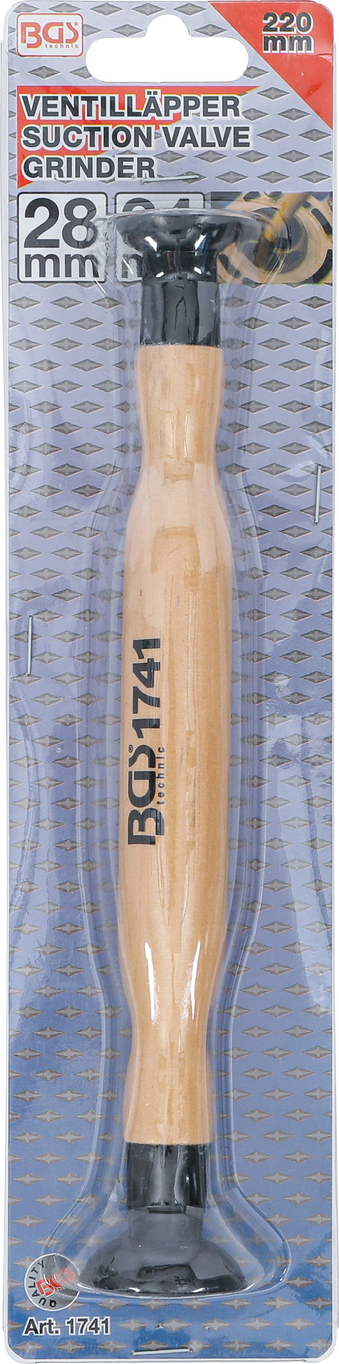 Der Ventilläpper 28 x 34 mm ist das ideale Werkzeug für präzise Arbeiten an Ventilsitzen bei der Motorüberholung. Mit seinem rutschfesten Holzgriff und den beiden unterschiedlich großen Gummisaugern ermöglicht er Ihnen ein kontrolliertes und gleichmäßiges Schleifen der Ventile. Dank der robusten Verarbeitung ist das Werkzeug langlebig und für den regelmäßigen Einsatz in der Werkstatt bestens geeignet. Die handliche Länge von 220 mm sorgt dabei für optimalen Halt und Komfort bei der Anwendung.