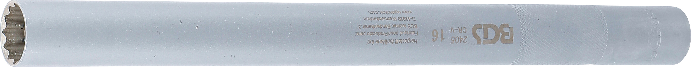 Produktinformationen "BGS Zündkerzen-Einsatz Zwölfkant extra lang 16 mm, Innenvierkant 10 mm (3/8 Zoll)"