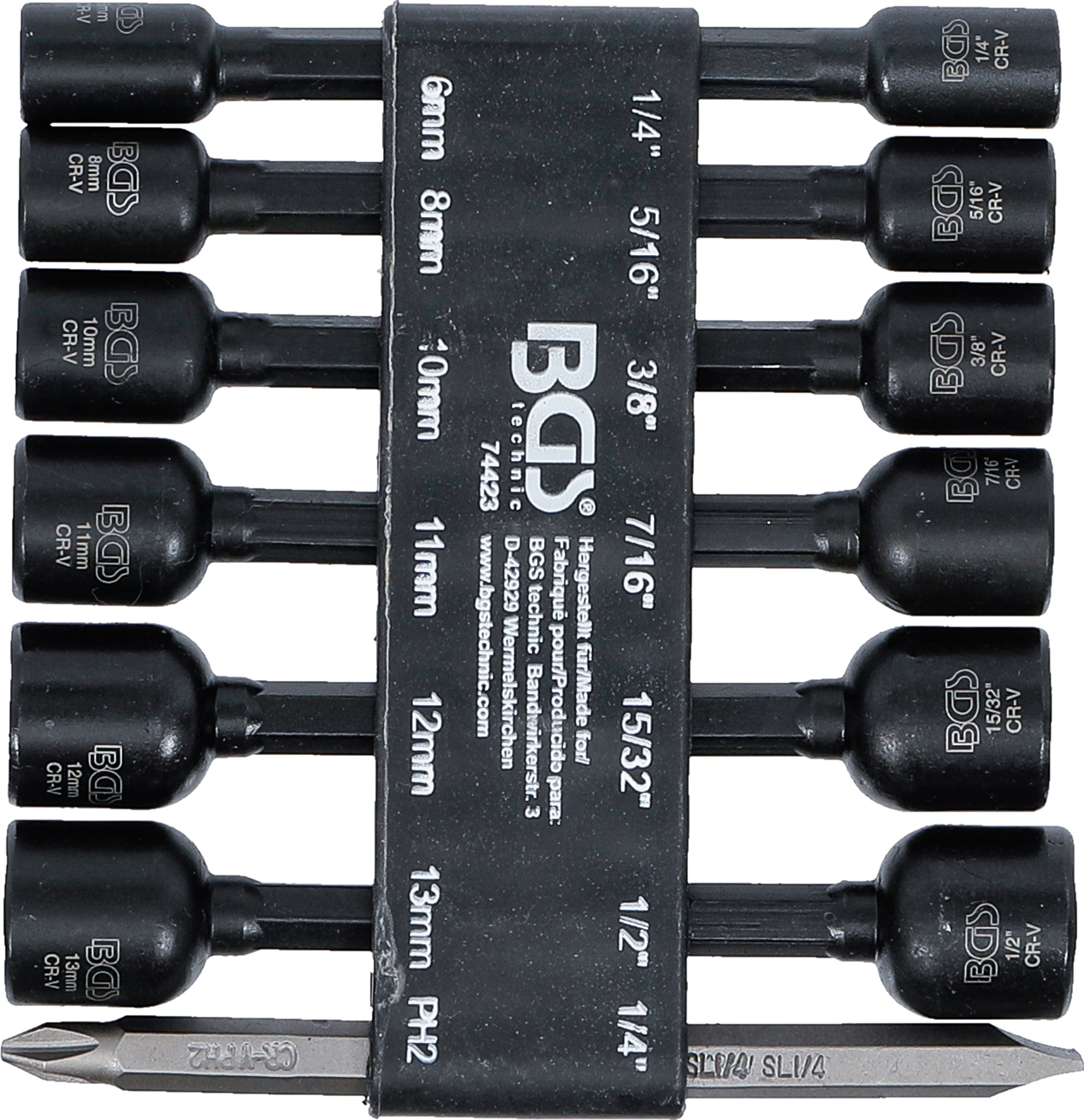 Produktinformationen "Steckschlüssel-Einsatz-Satz Sechskant 14-tlg. | für Bohrmaschinen | Antrieb Außensechskant 6,3 mm (1"