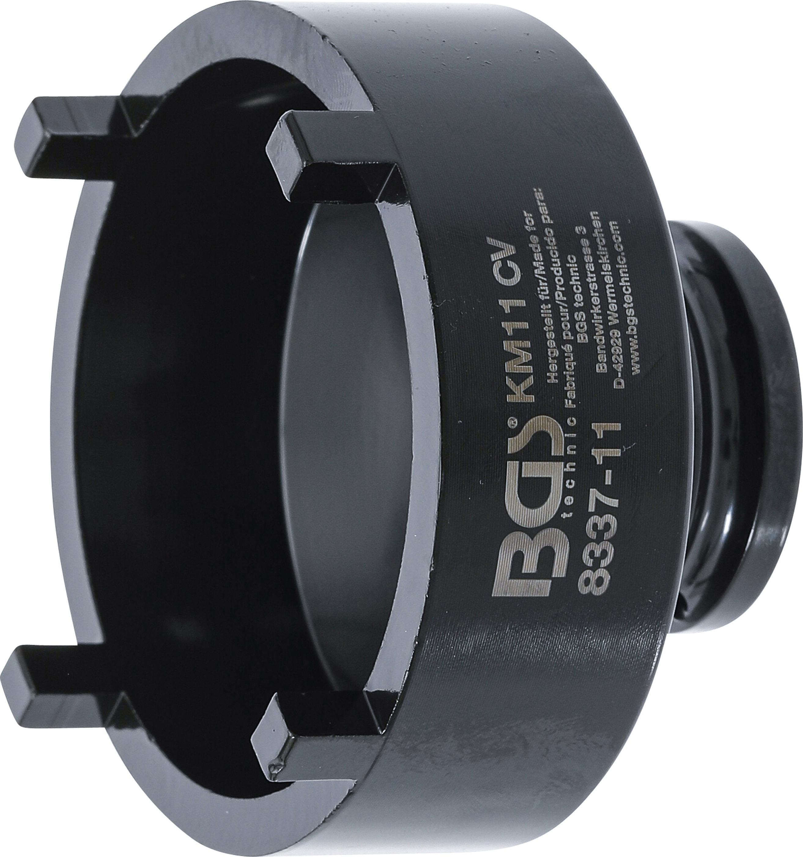 Der BGS Nutmutternschlüssel KM11 mit außenliegenden Zapfen wurde speziell zum schonenden Lösen und Anziehen von Nutmuttern nach DIN 981 entwickelt. Er eignet sich ideal für die Verwendung auf Wellen, Spann- oder Abziehhülsen und bietet durch seine präzise gefertigten Zapfen eine sichere Kraftübertragung ohne Beschädigung der Mutter. Gefertigt aus hochwertigem Chrom-Vanadium-Stahl überzeugt dieses Werkzeug durch hohe Stabilität, Langlebigkeit und Widerstandsfähigkeit im täglichen Werkstatteinsatz. Der Antrieb erfolgt über einen 20 mm (3/4") Innenvierkant, wodurch der Schlüssel mit gängigen Ratschen oder Drehmomentschlüsseln kompatibel ist.