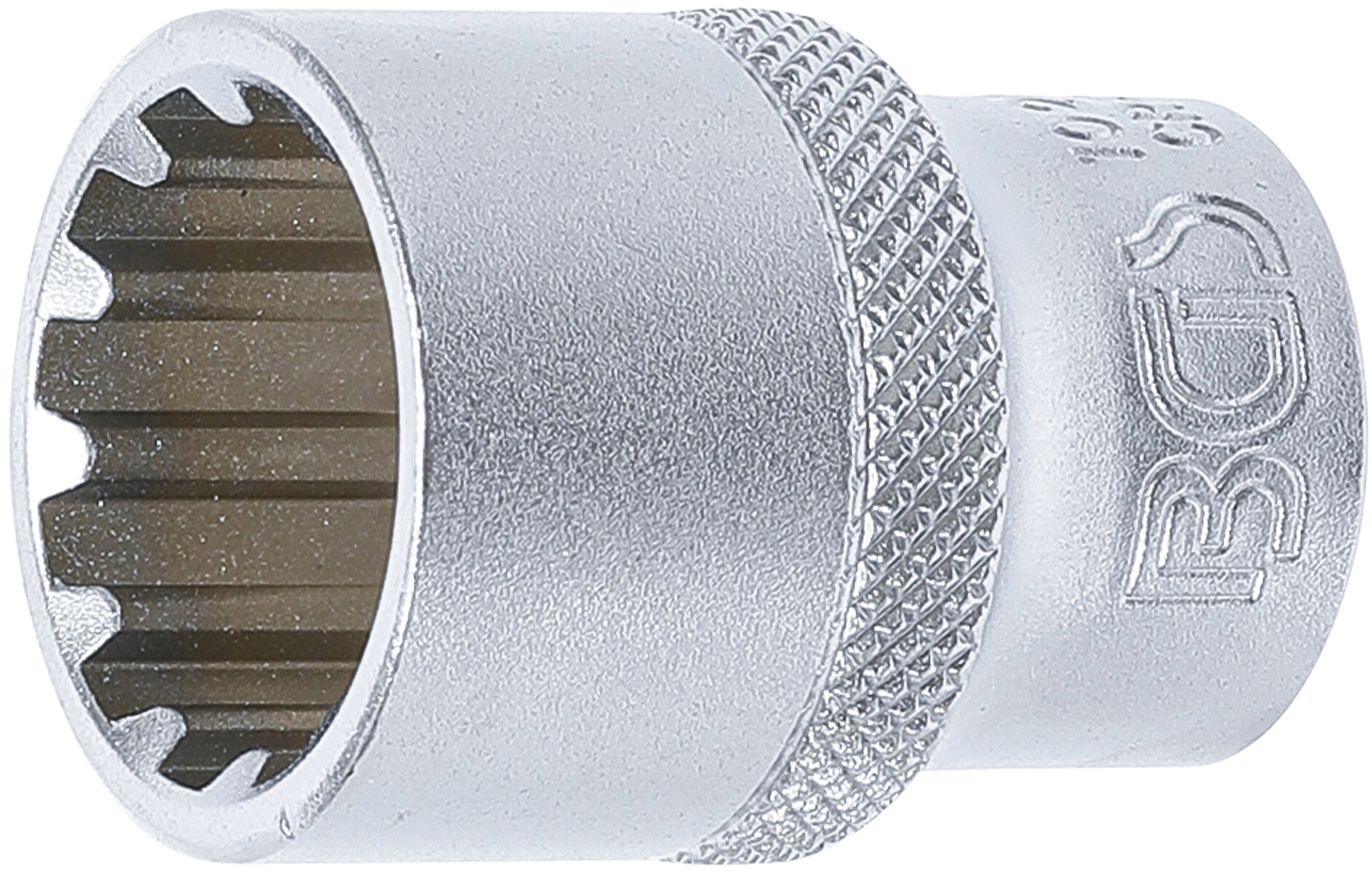 Der Steckschlüssel-Einsatz mit Gear Lock (Multiprofil) bietet maximale Vielseitigkeit für professionelle Werkstattanwendungen. Dank des präzisen Innenvierkants mit einer Antriebsgröße von 12,5 mm (1/2") ist dieser Einsatz stabil und zuverlässig im täglichen Gebrauch. Hergestellt aus hochwertigem Chrom-Vanadium-Stahl überzeugt er durch eine matte, verchromte Oberfläche, die optimalen Korrosionsschutz bietet. Die integrierte Rändelung ermöglicht einen sicheren Griff, selbst bei öligen Händen.
