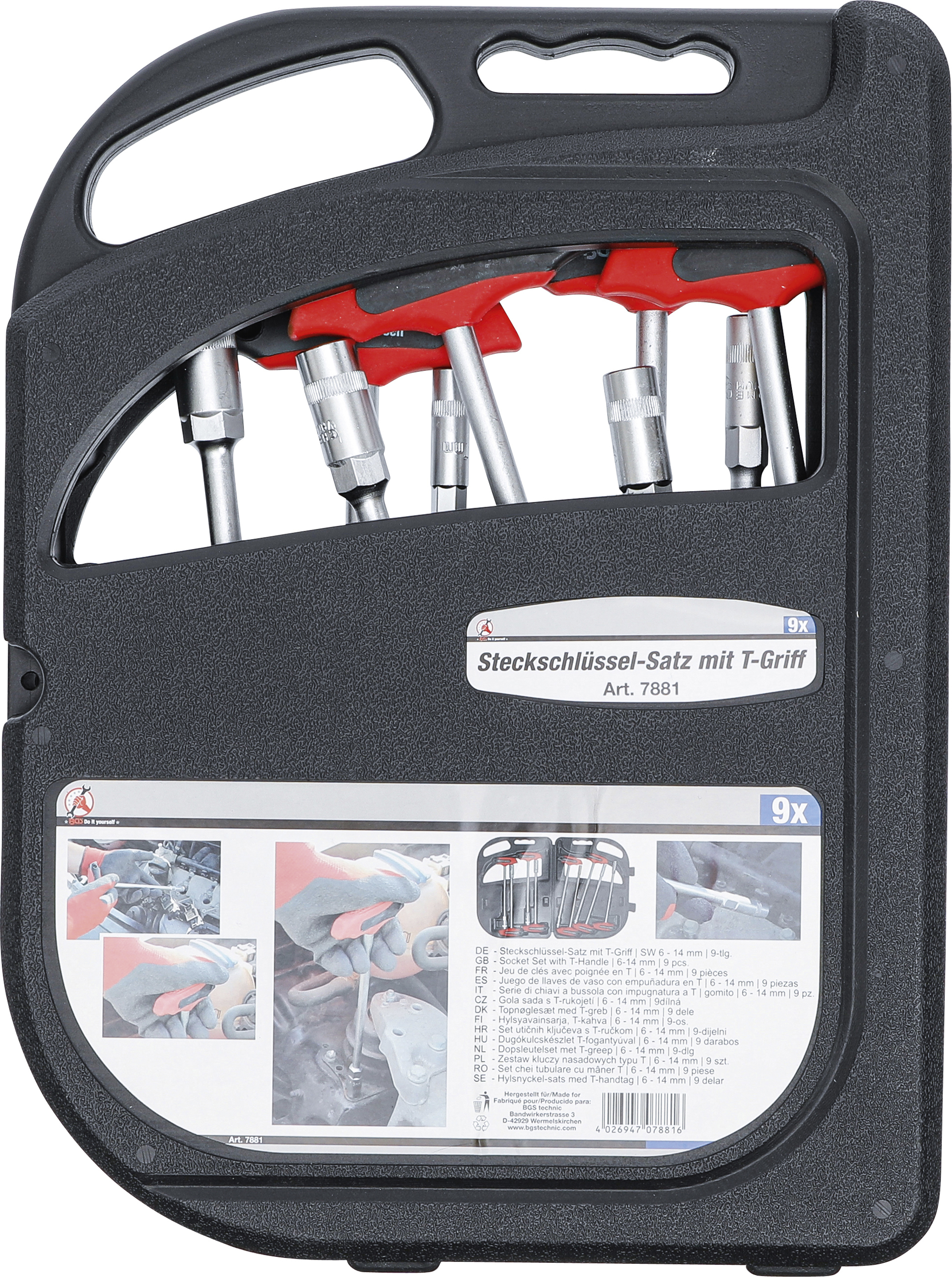 Produktinformationen "Steckschlüssel-Satz mit T-Griff 9-tlg. SW 6–14 mm"