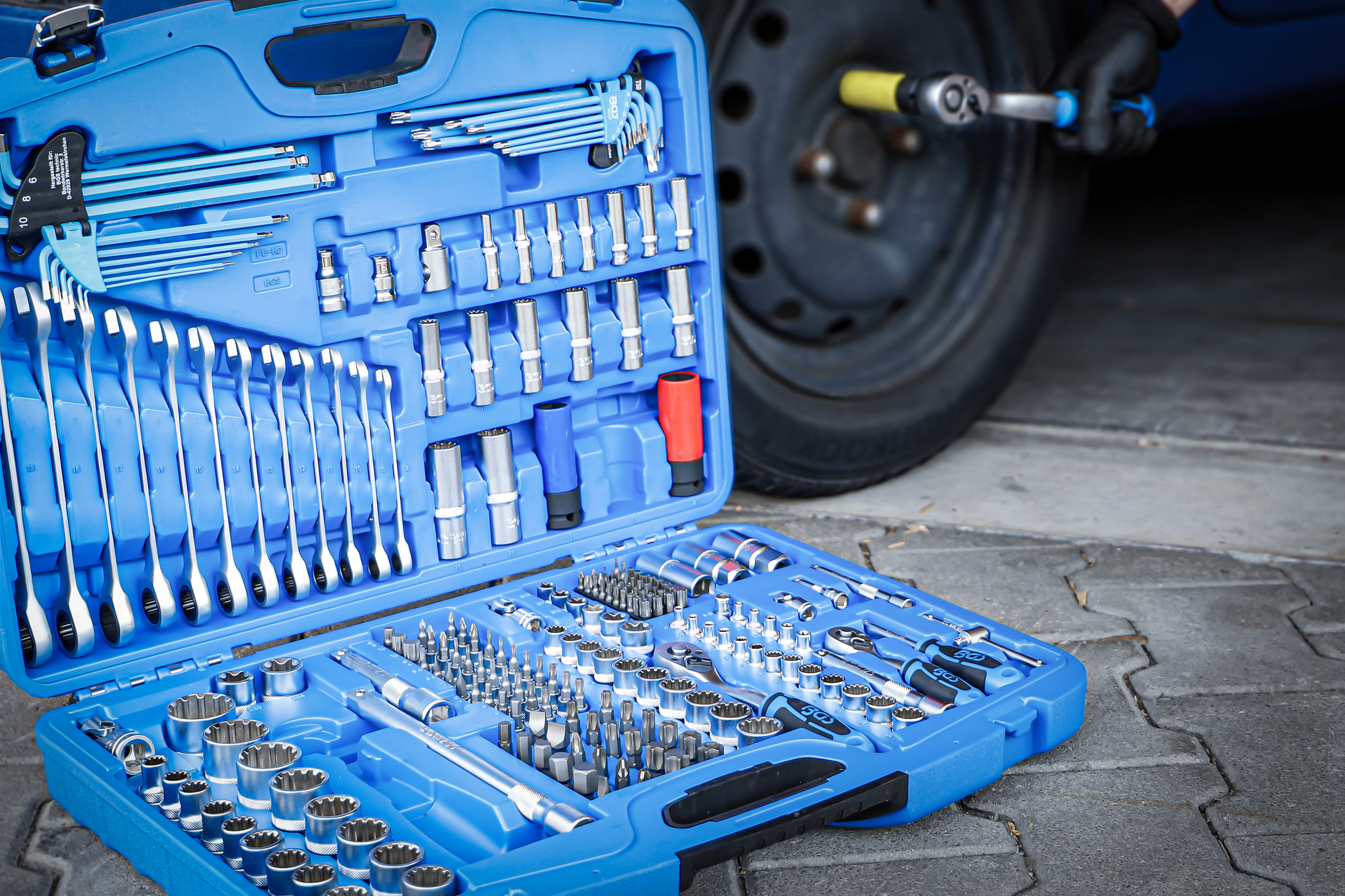 - Werkzeuge mit Antrieb 12,5 mm (1/2") inkl. Steckschlüssel-Einsätzen, Kraft-Schoneinsätzen und Zündkerzen-Einsätzen