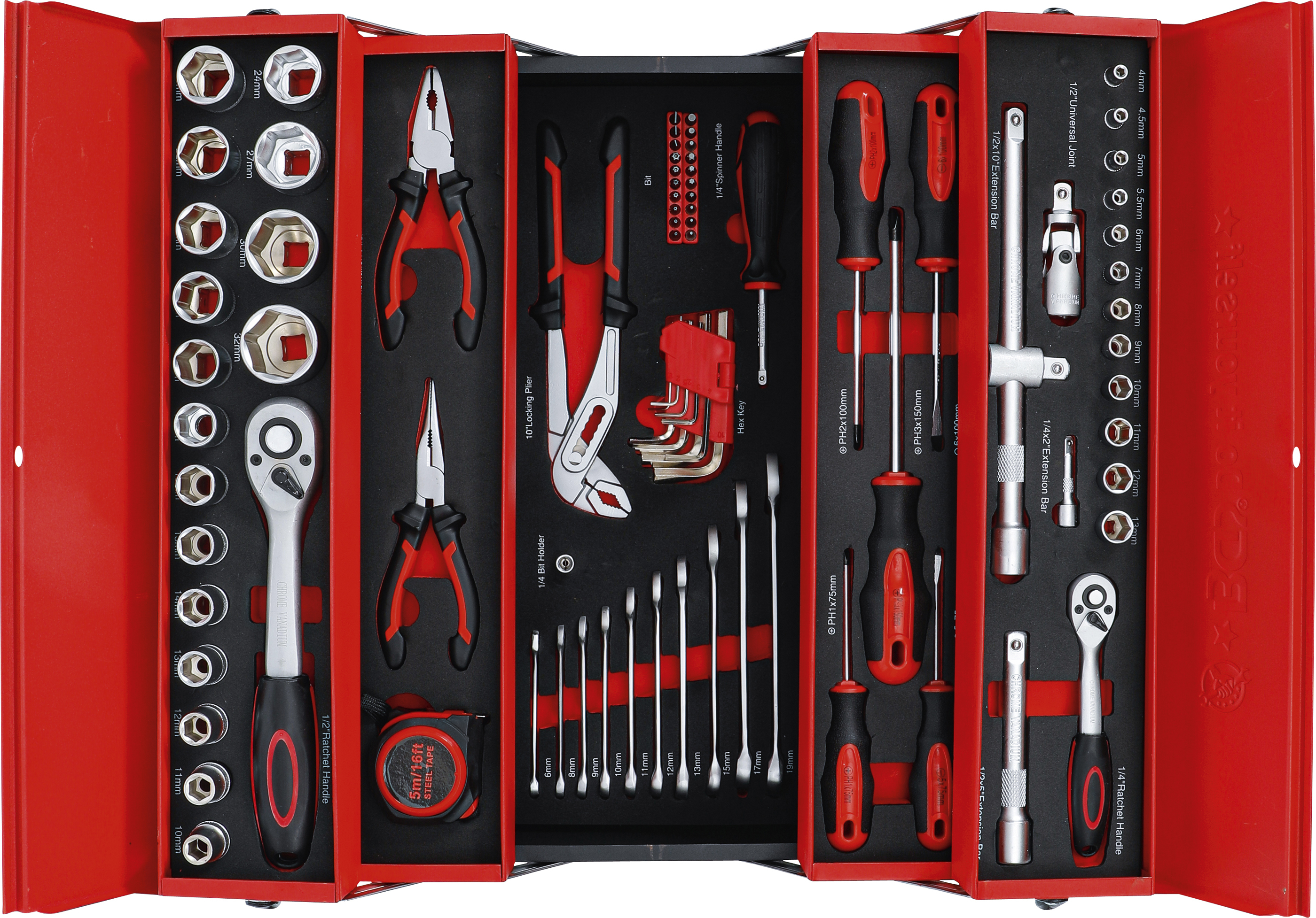 - Inkl. Steckschlüssel-, Zangen-, Schraubendreher- und Ringschlüsselsätze