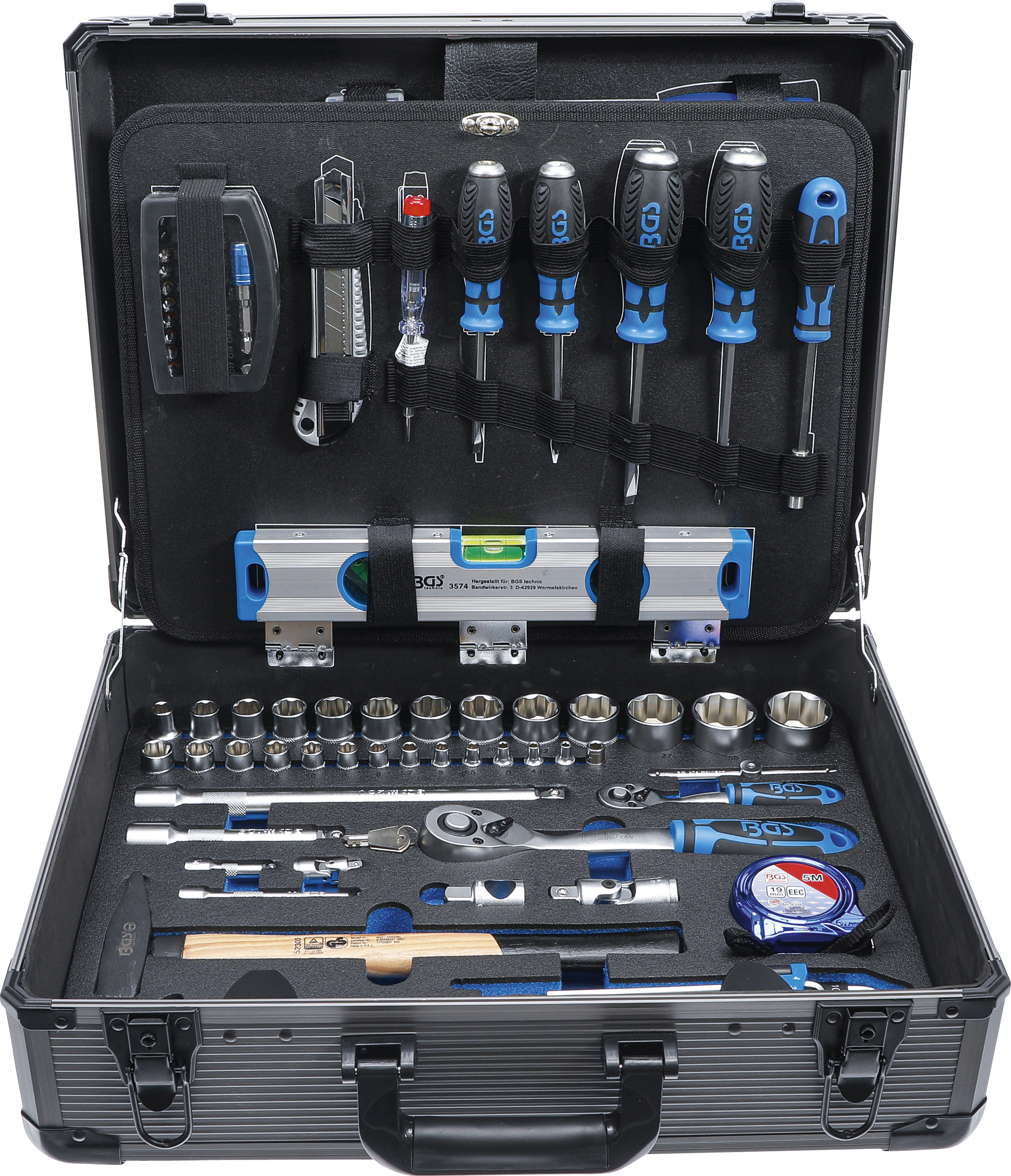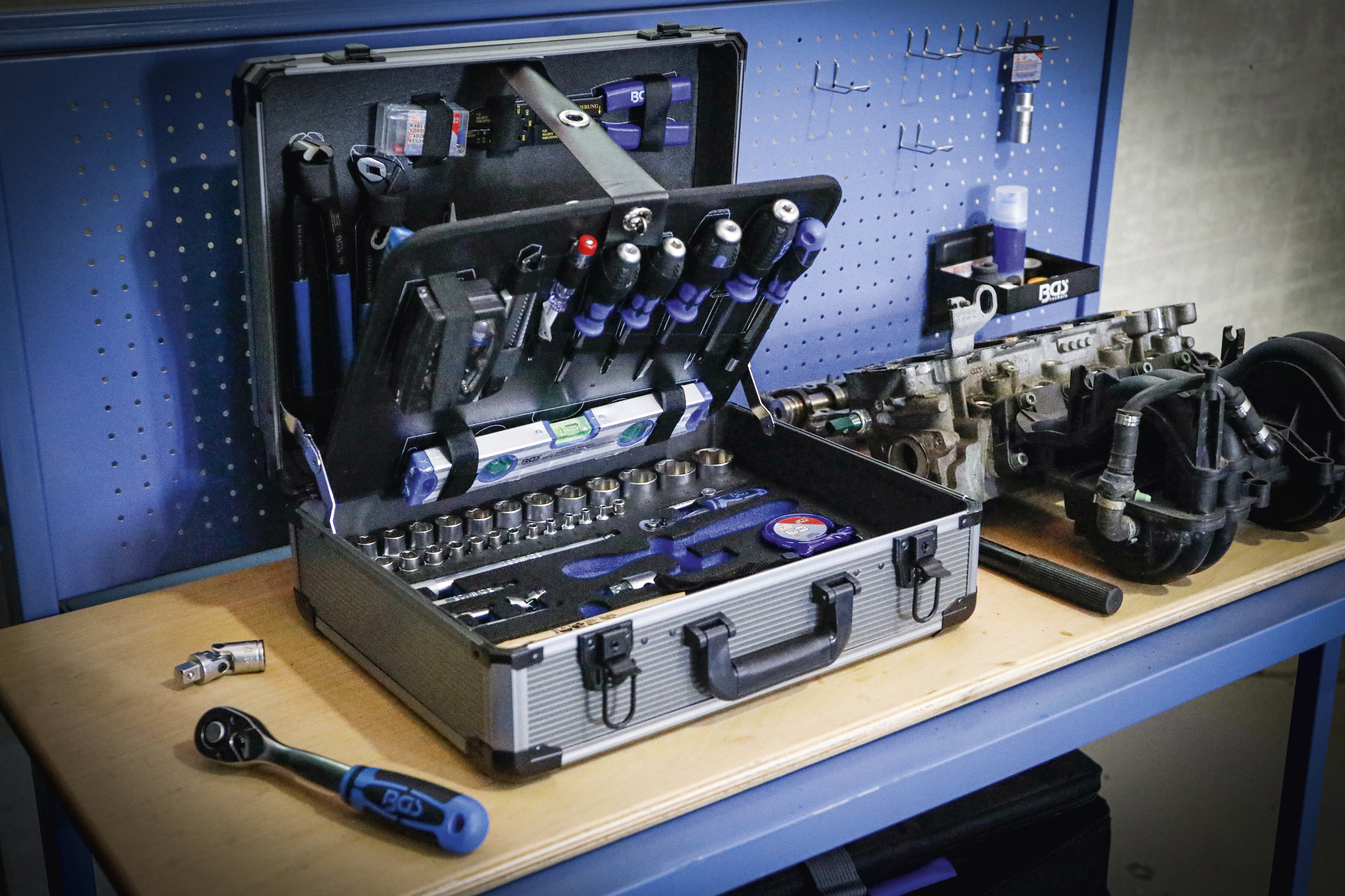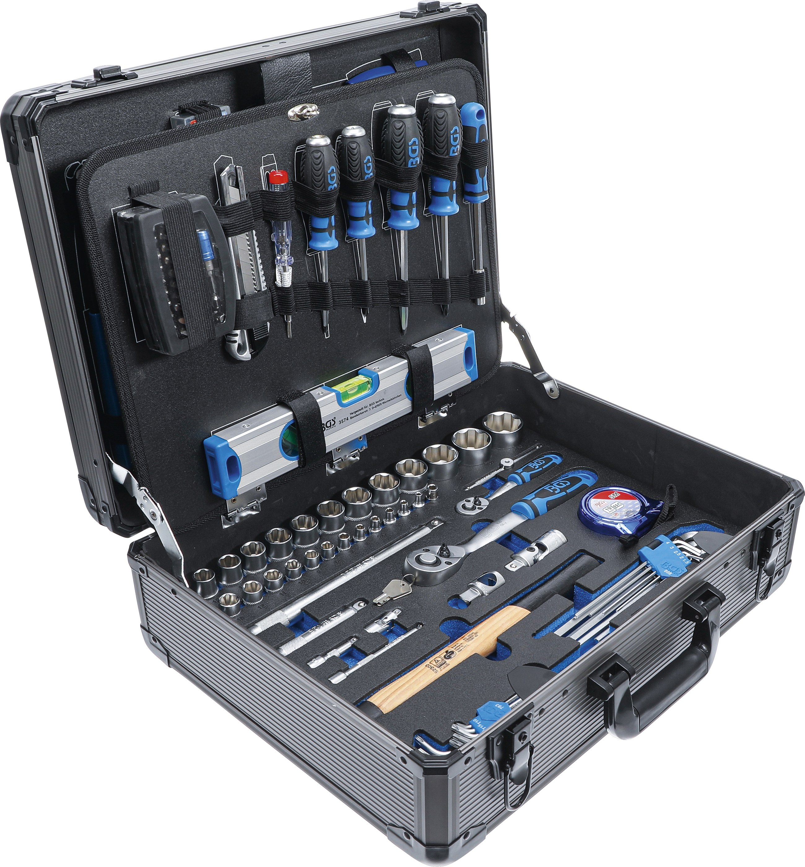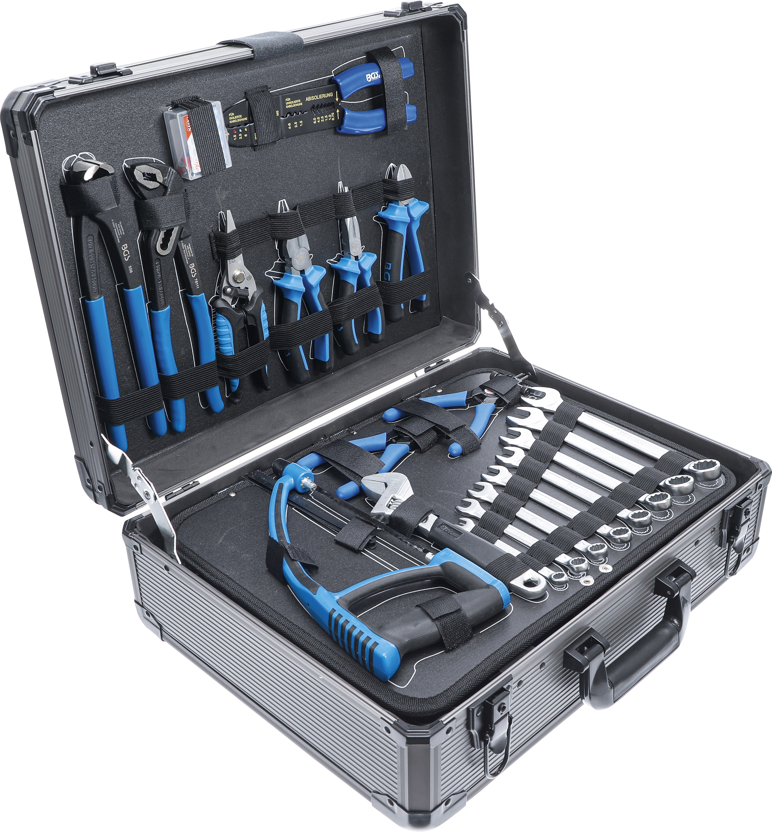 - Inklusive Ratschen, Stecknüsse, Bits, Zangen und Schraubendrehern