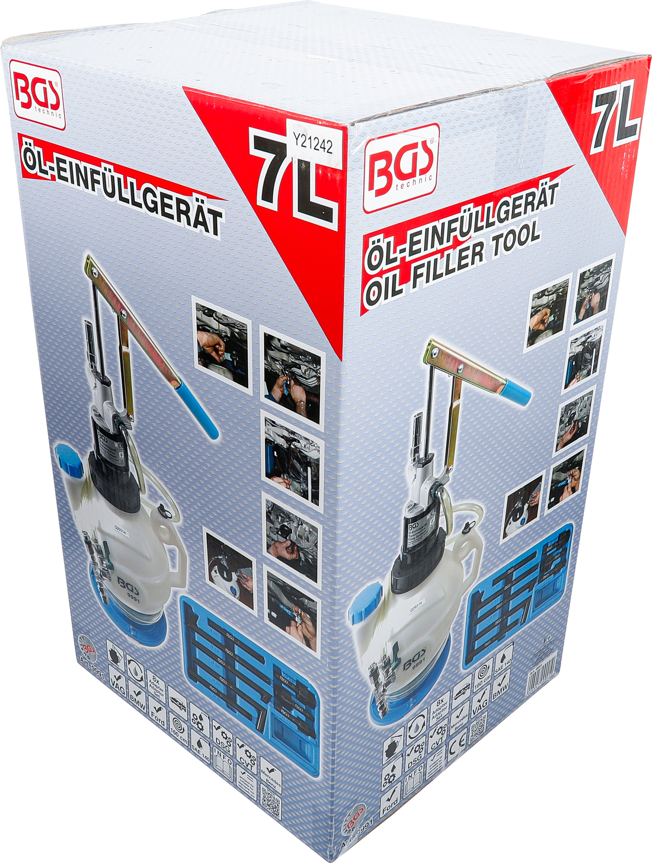 Produktinformationen "BGS Getriebeöl-Befüllgerät mit Handpumpe 7l mit Rücklaufsystem und 8 Adaptern"