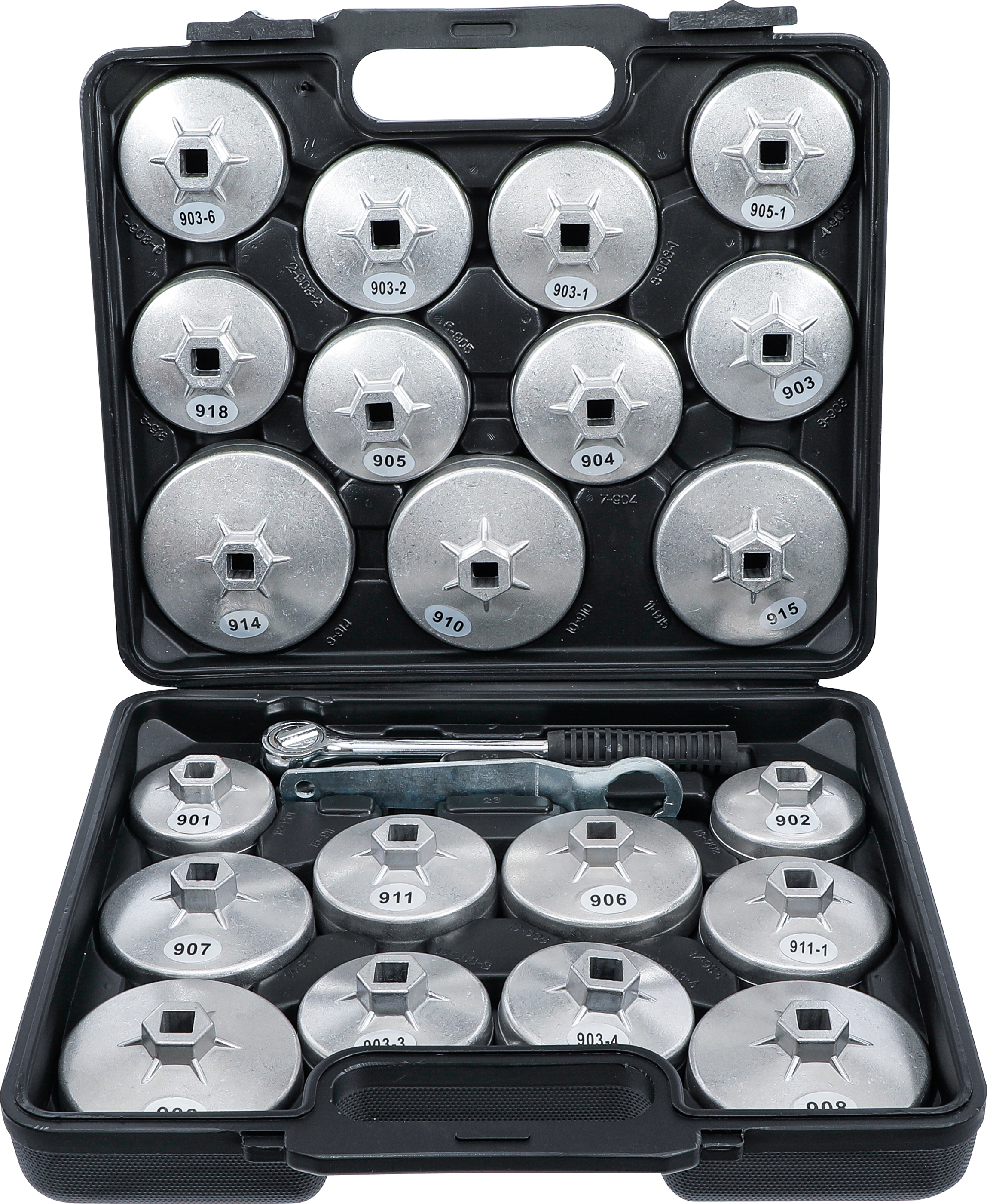 Weiterführende Links zu "Ölfilterschlüssel-Satz 23-tlg. Aluminium-Druckguss mit Innenvierkant 12,5 mm (1/2")"